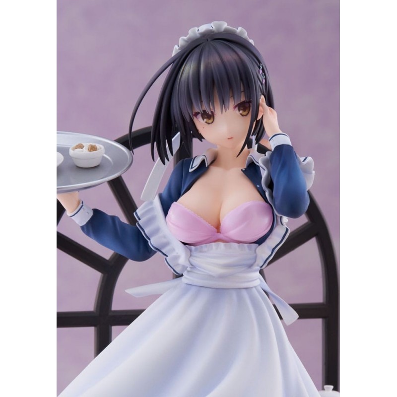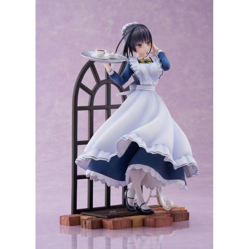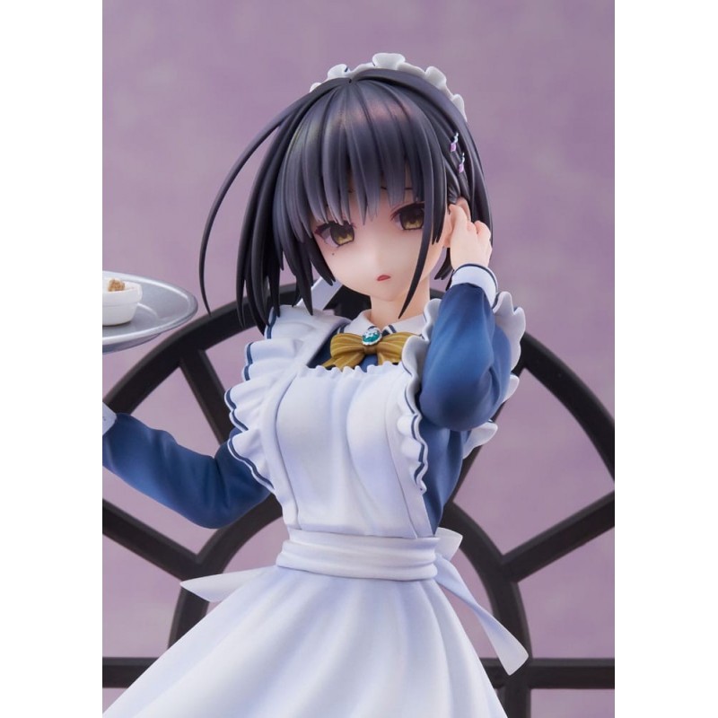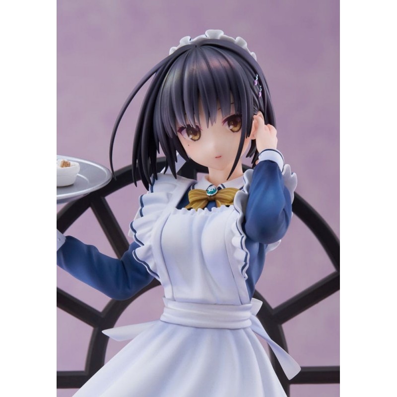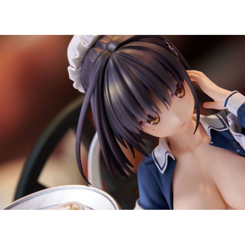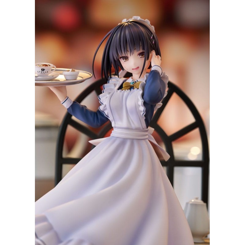 Vestida con un llamativo uniforme de camarera en tonos azul y blanco, Natsume sostiene una bandeja con una taza de café y postre, sobre un fondo que recrea un ambiente acogedor de café. Su expresión serena y detalles meticulosamente pintados hacen que esta figura cobre vida en cualquier colección. Un regalo perfecto para un fan del género o un capricho para uno mismo.