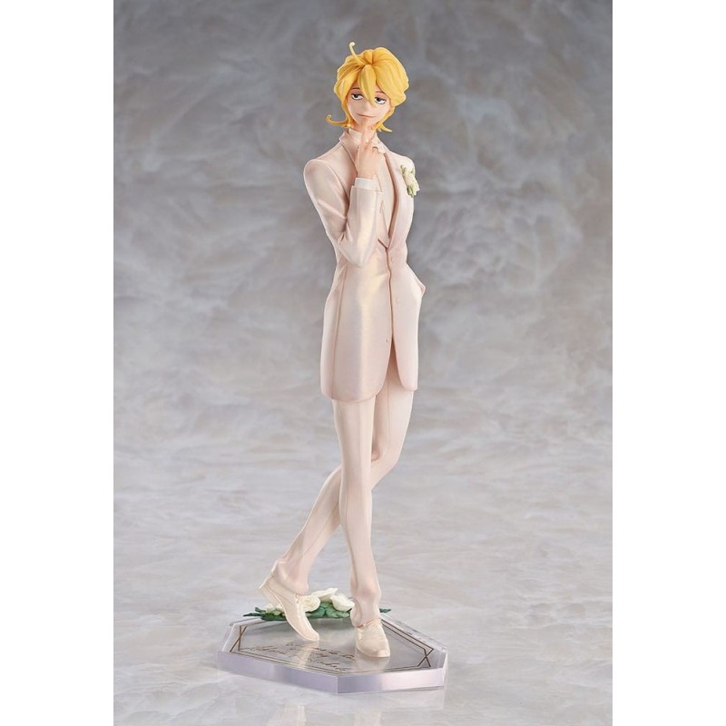 El personaje viste un elegante traje blanco, complementado con exquisitos detalles florales. La estatua se presenta sobre una base transparente decorada con detalles dorados y flores, ideal para exhibirla en cualquier colección. Viene empacada en una caja con ventana, lo que la convierte en un regalo ideal para fans de la serie o para darte un capricho especial.