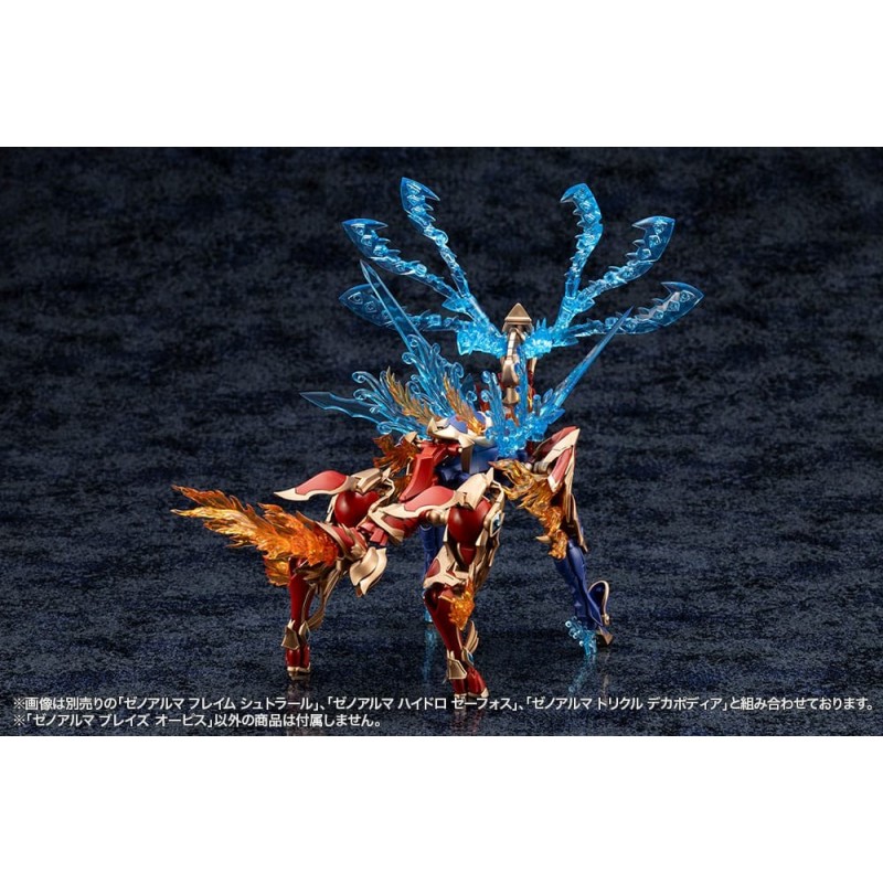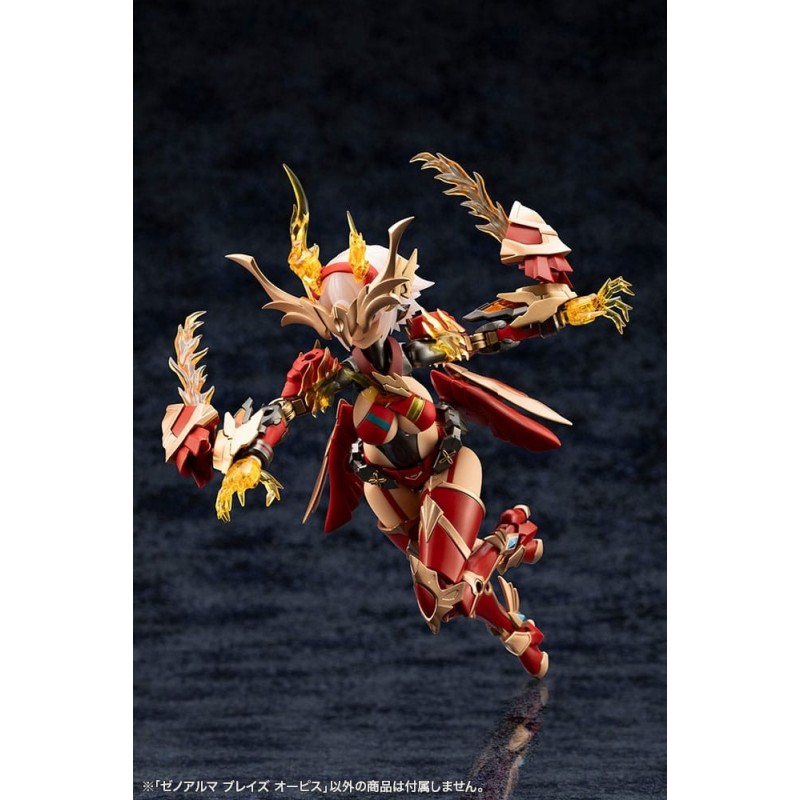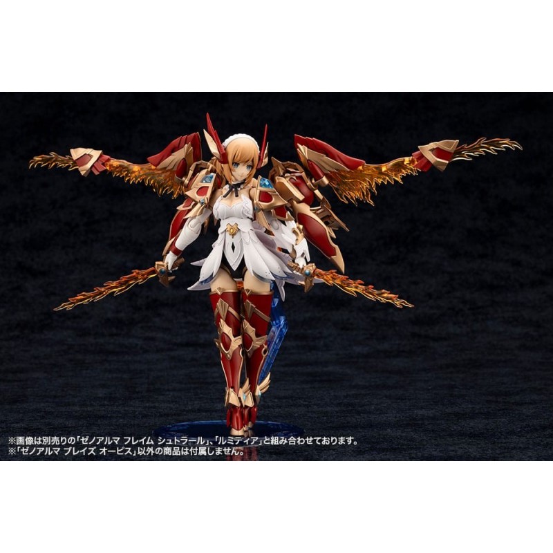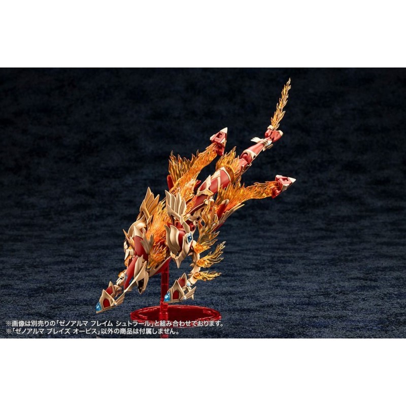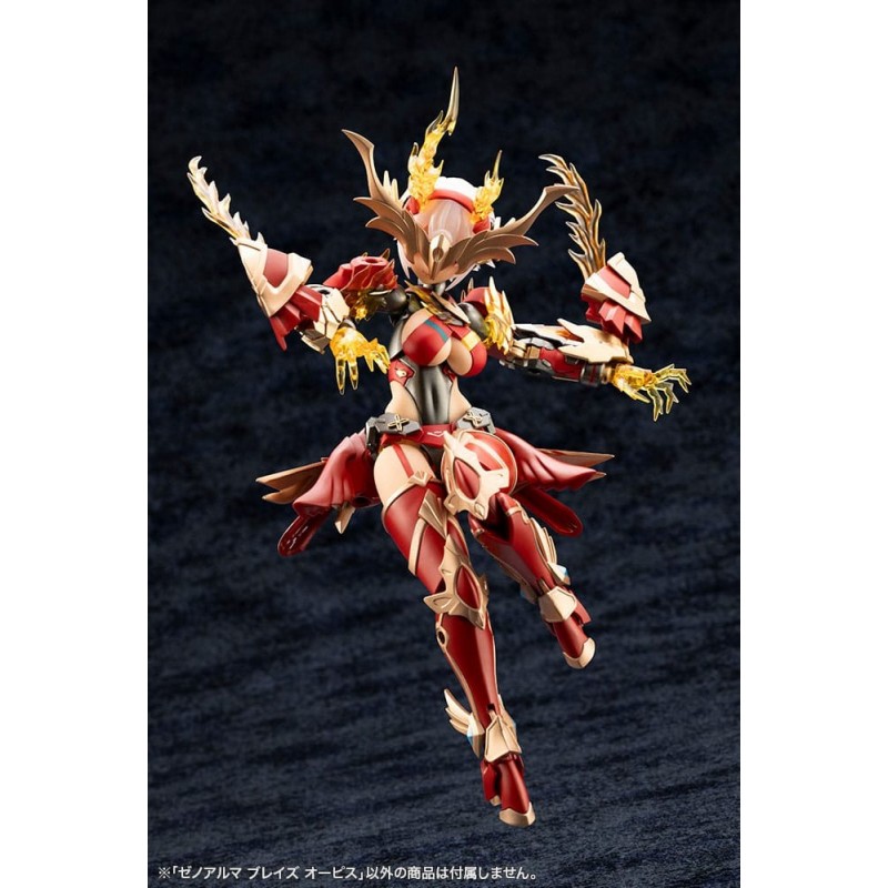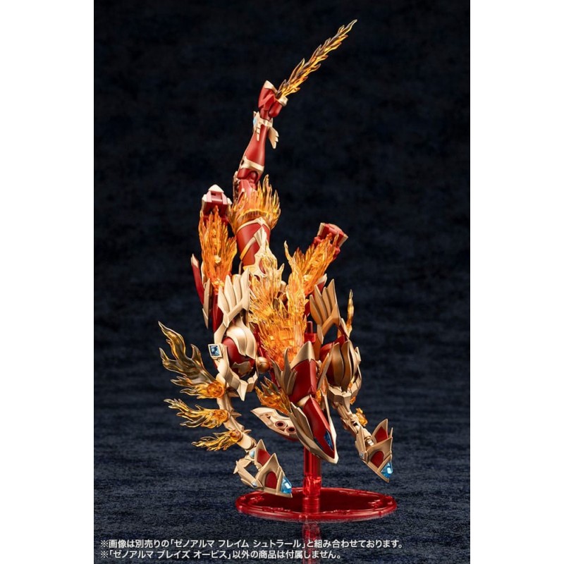 Presentamos la impresionante maqueta Arcanadea XenoAlma Blaze Ophis, parte de la aclamada serie de Kotobukiya. Este kit de modelismo, de 26 cm de altura, es ideal para los amantes del manga y anime que buscan un desafío creativo. Con una paleta de colores vibrantes, predominan el rojo, dorado y beige, creando un efecto visual dinámico y cautivador.