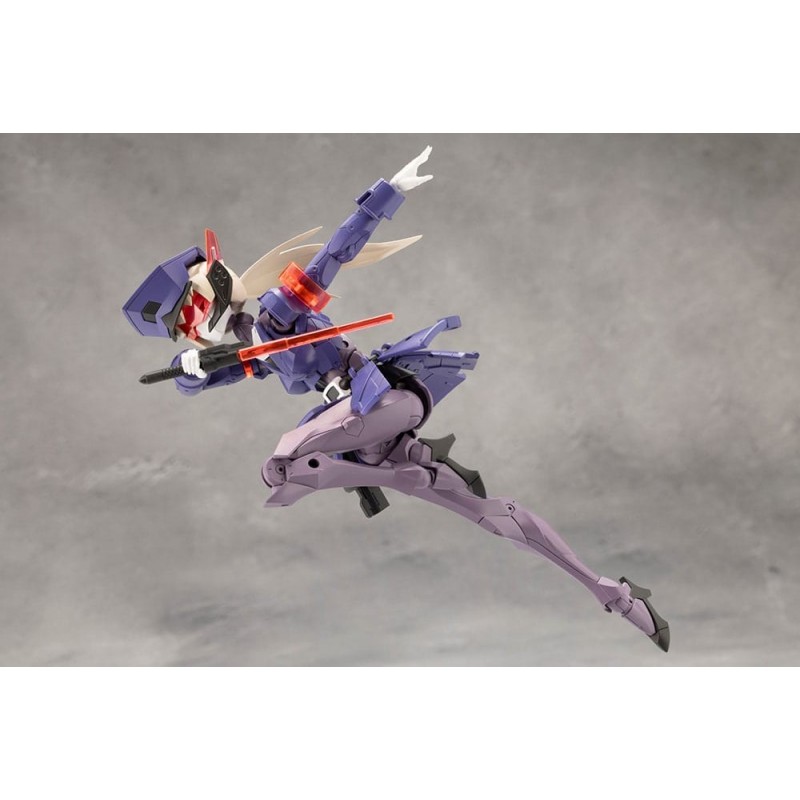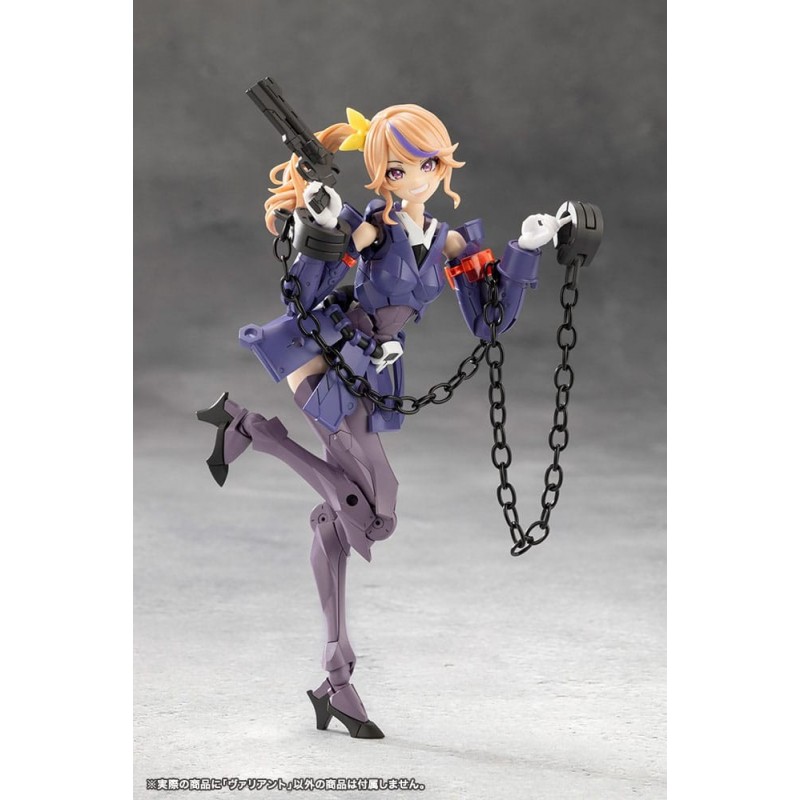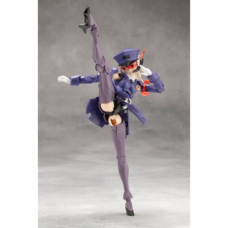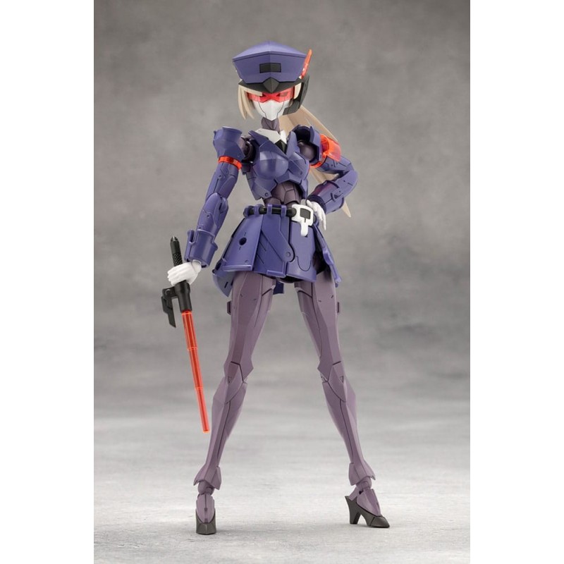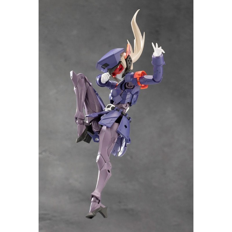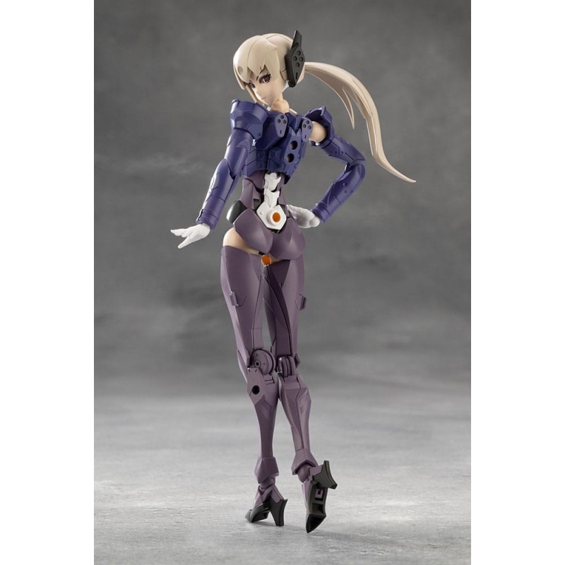 Descubre la maqueta Valiant de 16 cm, inspirada en la serie "Megalomaria Unlimited Universe" de Kotobukiya. Este kit de modelismo de plástico destaca por su elegante diseño en tonos morado y azul oscuro, con detalles en negro y rojo que realzan su carácter. La figura combina piezas de armadura con una capa futurista y un casco sofisticado, lo que le otorga una apariencia dinámica y estilizada.