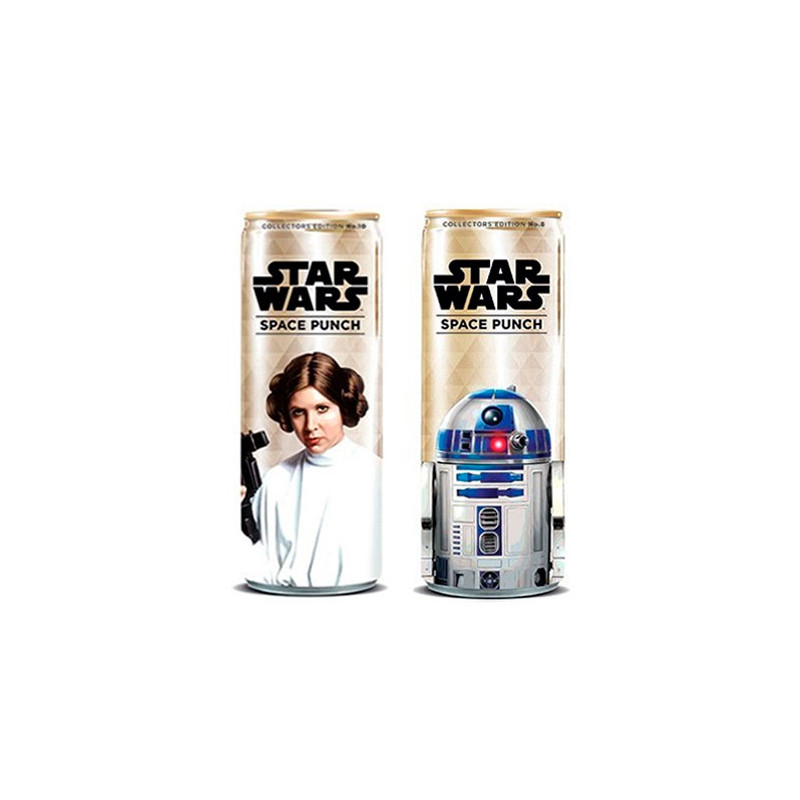 Se trata de la bebida Star Wars Space Punch, con un irresistible sabor a manzana y naranja y cuyo envase está inspirado en la saga de aventuras espaciales por excelencia, Star Wars. Y en este caso el diseño es todo un homenaje a dos personajes tan emblemáticos como R2-D2, este valeroso e icónico droide y nuestra princesa estelar favorita, la gran Leia, con ese clásico peinado y traje blanco.