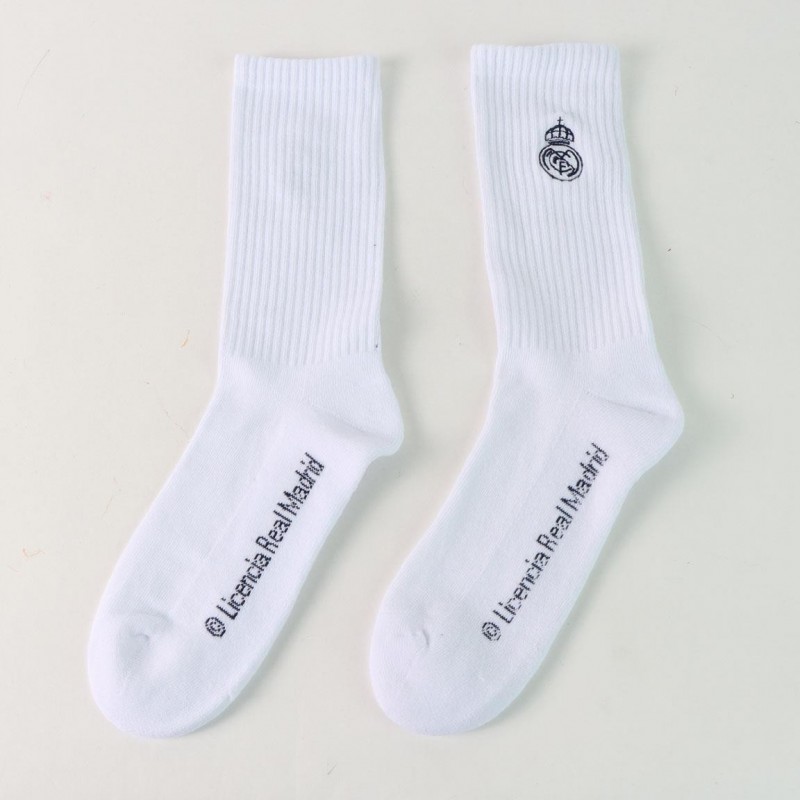 Este pack de calcetines del Real Madrid es perfecto para los verdaderos fanáticos del club. Incluye tres pares de calcetines en colores azul marino, blanco y gris, todos con el escudo del Real Madrid bordado. Están confeccionados con un 75% de algodón, 23% de nylon y 2% de spandex, asegurando comodidad y durabilidad. Disponibles en dos tallas: 35/38 y 43/46, para que encuentres tu ajuste perfecto. Un regalo ideal tanto para el día a día como para animar al equipo en el estadio.