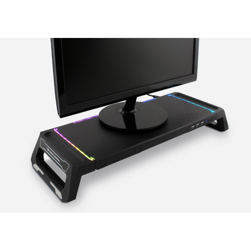 Descubre el elevador de monitor Deep Gaming, ideal para los entusiastas de la tecnología que buscan funcionalidad y estilo. Con un diseño elegante en color negro, este soporte cuenta con efectos de luz RGB, permitiéndote elegir entre 10 modos o desactivar la iluminación según tus preferencias. Su construcción en material ABS garantiza durabilidad y resistencia.