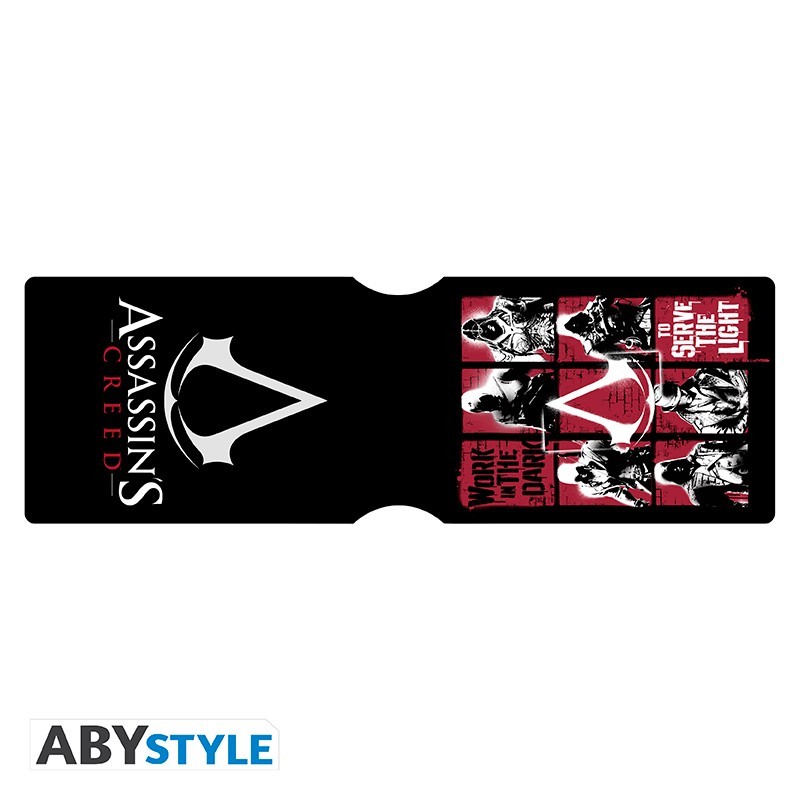 Este tarjetero de Assassin's Creed es el complemento perfecto para cualquier fan de la célebre saga de videojuegos. Presenta un diseño estilizado en color negro con el icónico logotipo de Assassin's Creed en un elegante tono blanco, acompañado por una llamativa cuadrícula de imágenes de varios asesinos de la serie en tonos rojos y blancos.