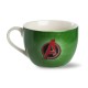Con un diseño llamativo, la taza presenta un vibrante color verde que captura la esencia del poderoso Hulk. En un lado, encontrarás una imagen dinámica de Hulk en acción, mientras que el otro lado luce el icónico logo de los Avengers en rojo y negro, resaltando su conexión con el universo Marvel.