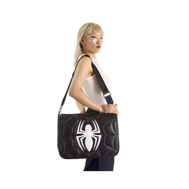 Descubre la bandolera Spider-Man de Loungefly, un accesorio esencial para los fans del universo Marvel. Con una elegante combinación de colores negros y detalles en blanco, esta bolsa destaca por sus icónicos ojos de Spider-Man en la parte frontal y un diseño de telaraña que la rodea. Fabricada en poliéster de alta calidad, es resistente y duradera, ideal para el uso diario. Sus dimensiones de 40.6cm x 29cm x 11.4cm cm la hacen perfecta para llevar bastantes cosas sin perder el estilo.