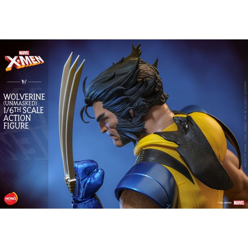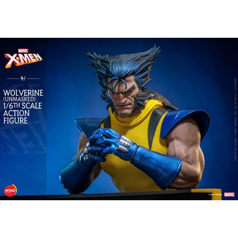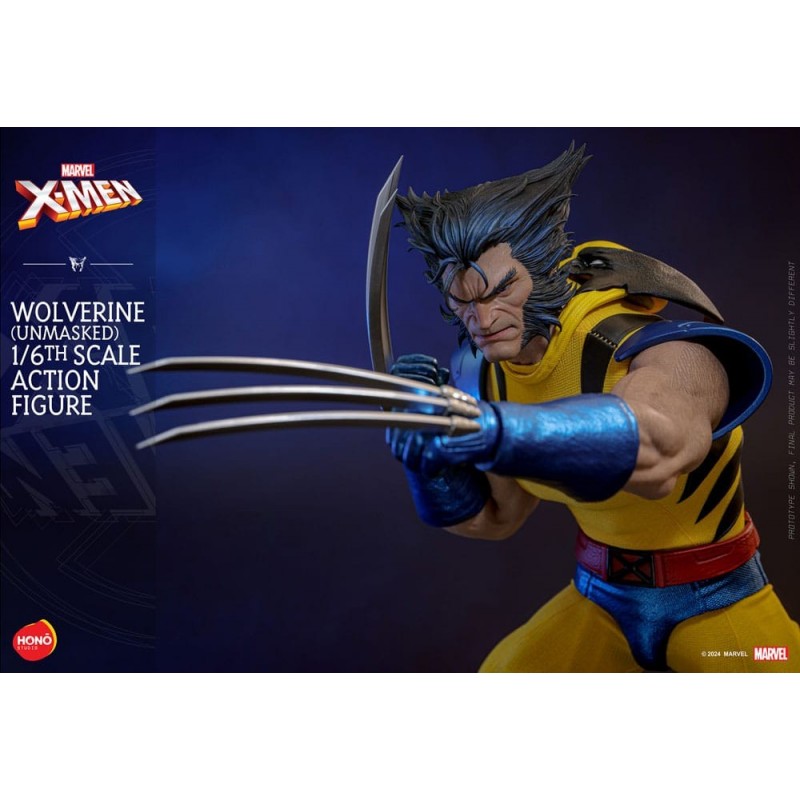 Fabricada por Hono Studio, esta figura articulada incluye un fondo de cómic, perfecto para recrear tus escenas favoritas. La vestimenta clásica de colores azul y amarillo resalta el poderoso físico de Wolverine, mientras que las garras extendidas añaden dinamismo.