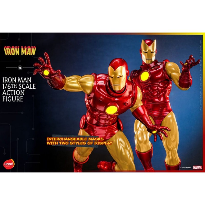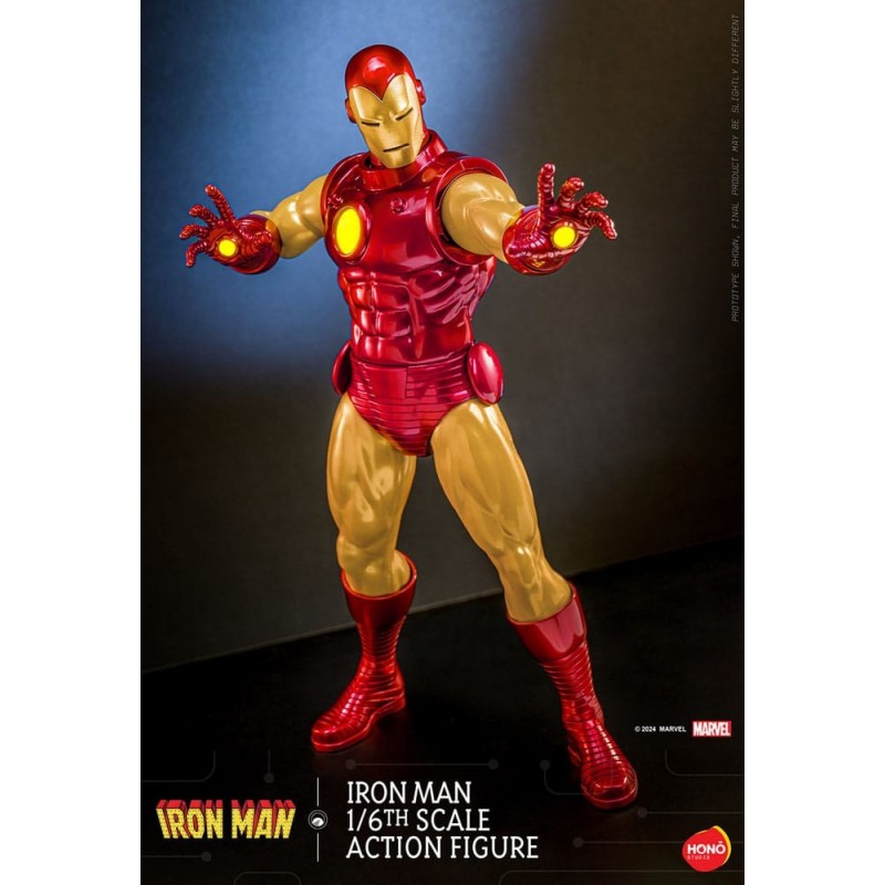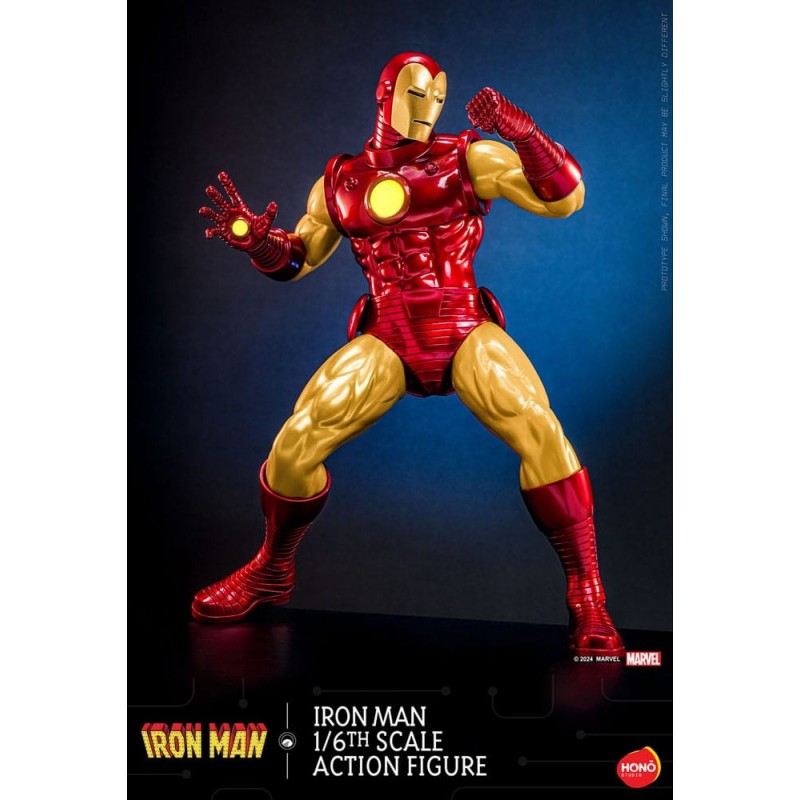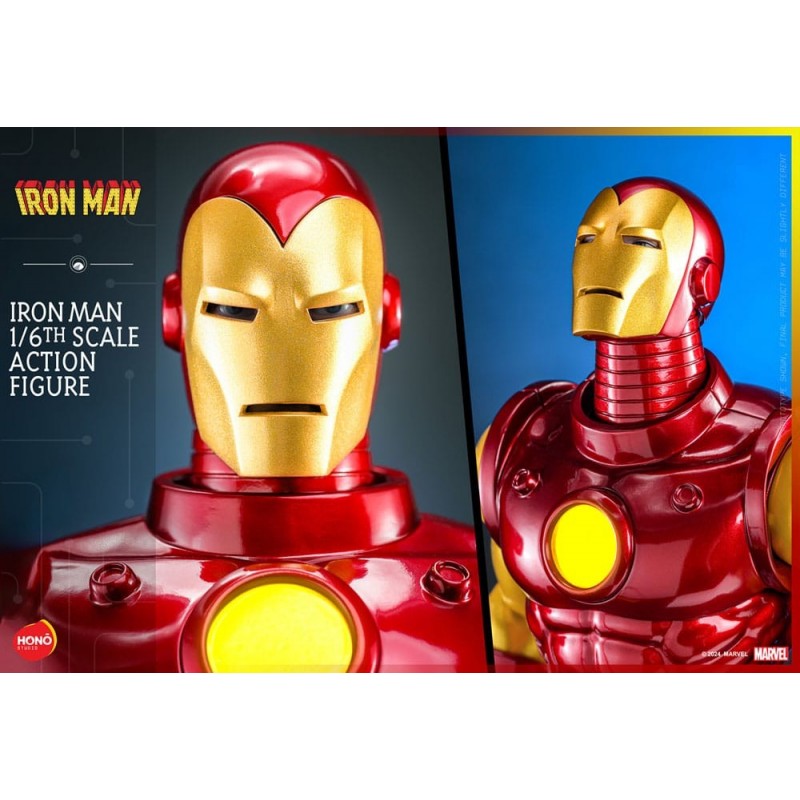 Descubre la impresionante figura articulada de Iron Man a escala 1/6 de 32 cm, fabricada por Hono Studio. Este detallado coleccionable destaca por su función de iluminación LED en el reactor ARC, añadiendo un toque realista y espectacular. La figura presenta un acabado en pintura metálica de gran calidad, con brazos y piernas de silicona sin costuras para una apariencia más auténtica.