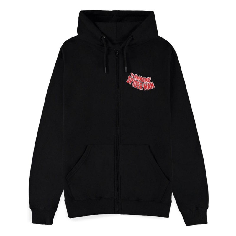 Descubre la sudadera con capucha de Spider-Man, un imprescindible para los fans del universo Marvel. Esta sudadera, de color negro y hecha de 100% algodón, garantiza máxima comodidad y calidez. En la parte trasera, presenta un vibrante diseño del icónico Spider-Man en acción, mientras que el frontal exhibe discretamente el logo de The Amazing Spider-Man en el lado izquierdo del pecho.