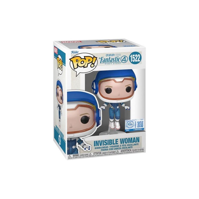 Descubre la Figura POP! de Invisible Woman (Astronauta), una pieza excepcional de la línea Funko dedicada a Los Cuatro Fantásticos. Esta figura de vinilo de 9 cm captura a la heroína con un traje espacial detallado, en tonos azules y blancos, y un característico casco de astronauta pintado en azul. Su diseño incluye una pose flotante gracias a su base transparente, lo que añade un toque dinámico a esta pieza de colección.