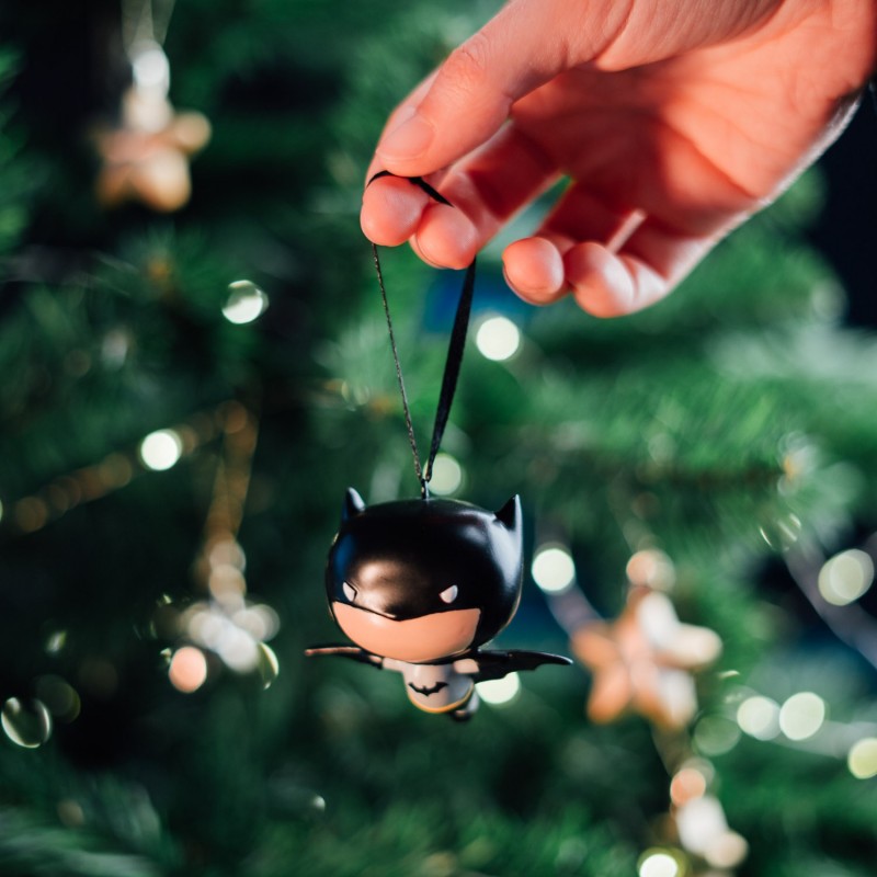 Las figuras están pintadas a mano, lo que asegura un toque único en cada pieza. Cada adorno incorpora una cinta de raso, disponible en colores coordinados con cada superhéroe, para facilitar su colocación en el árbol. Con una altura máxima de aproximadamente 70 mm, son el tamaño perfecto para añadir un toque especial a tu decoración navideña.