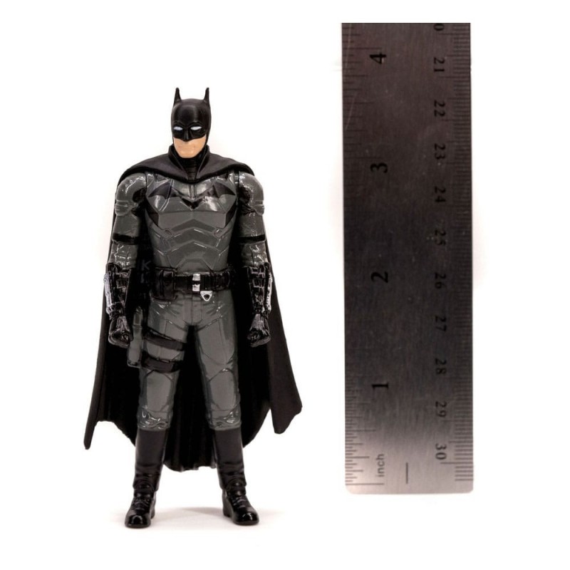 Incluye una figura de Batman de 7 cm, ideal para exhibición. Este vehículo no solo es un tributo visual, sino que también incorpora características interactivas. Funciona con 1 pila LR44 (no incluida), permitiendo que los faros delanteros se iluminen, recreando la atmósfera de las escenas de acción más emocionantes.