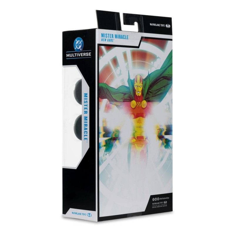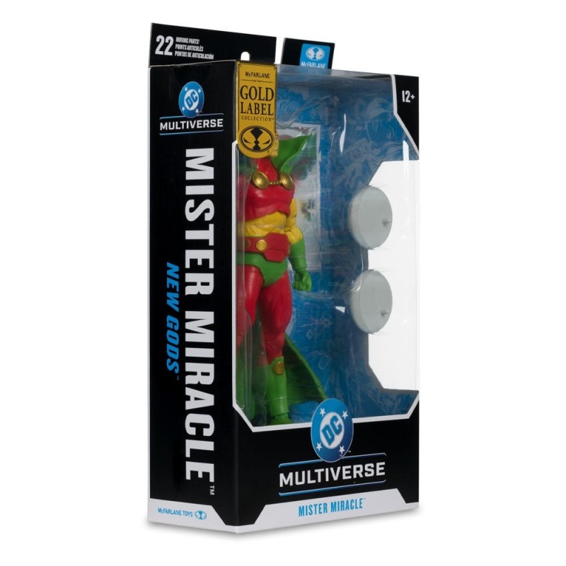 Explora el universo de DC Comics con la figura articulada de Mister Miracle de la línea Gold Label. Con un tamaño de aproximadamente 18 cm, esta figura captura a la perfección los icónicos colores rojo, amarillo y verde de Mister Miracle, incluyendo detalles dorados en su traje y una impresionante capa verde que le confiere un aspecto imponente.