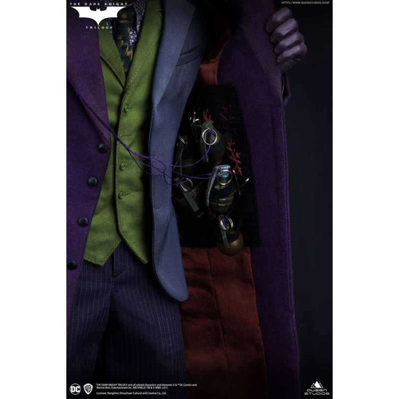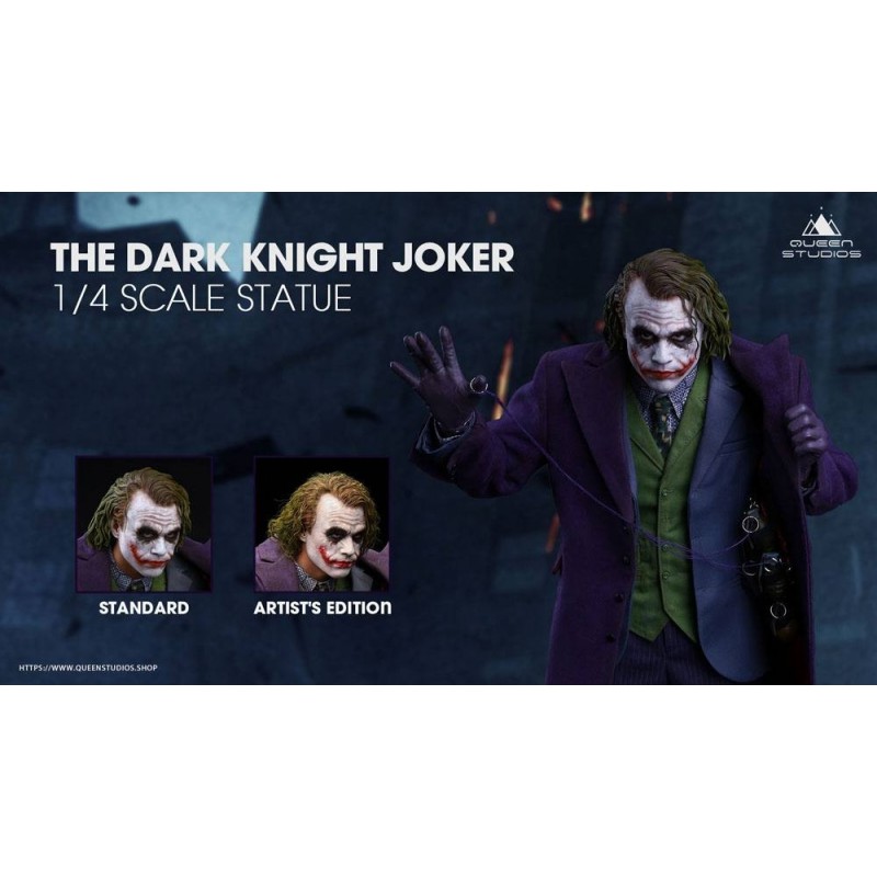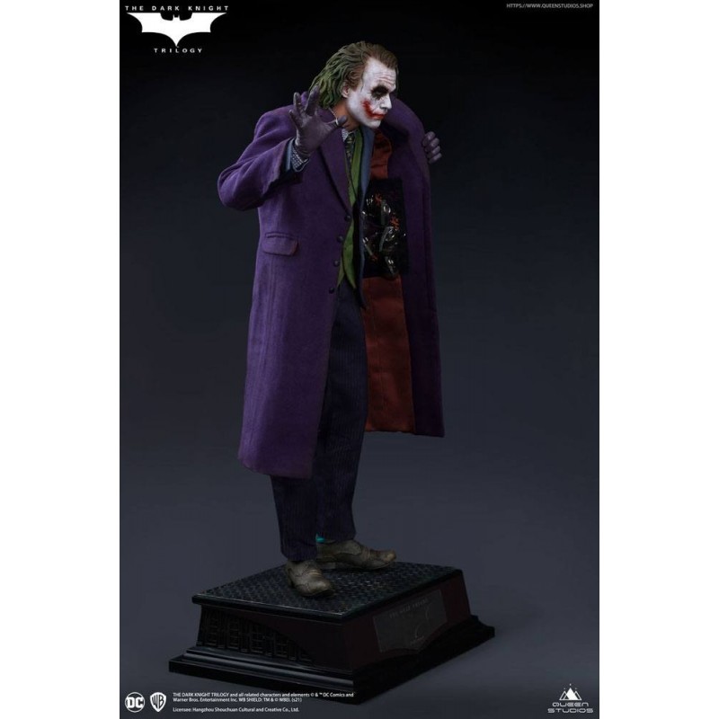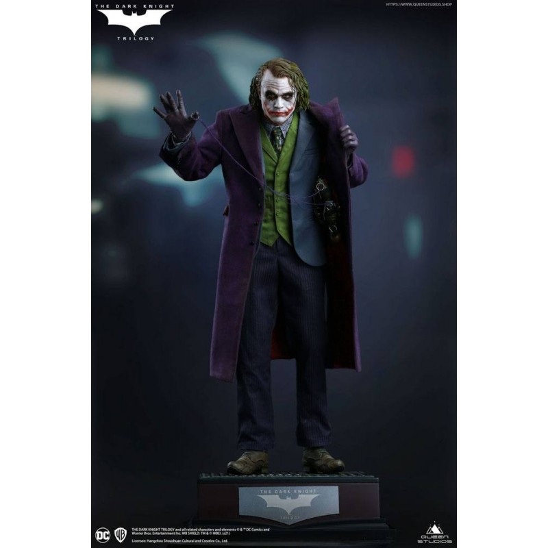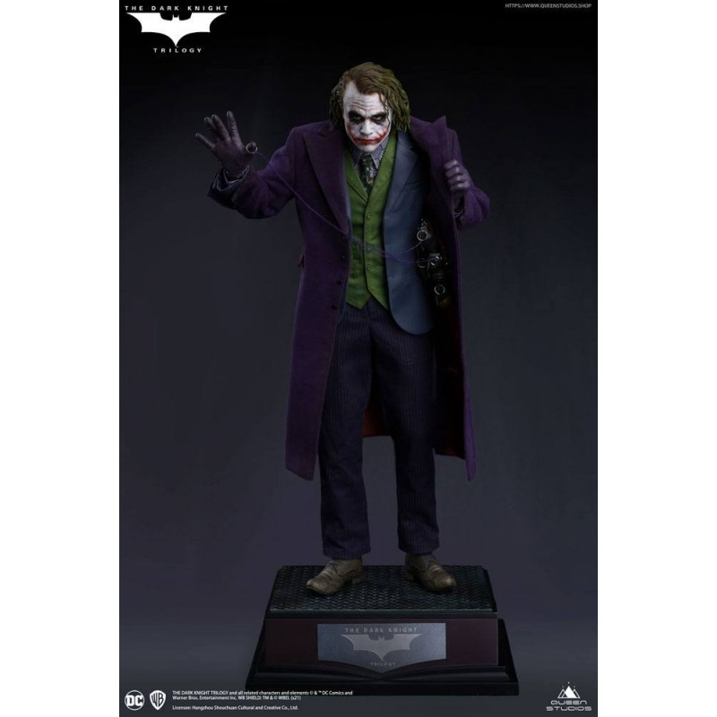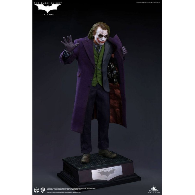 La estatua del Joker de Heath Ledger de la película "The Dark Knight" es una pieza imprescindible para cualquier fan del universo de DC Comics. Fabricada por Queen Studios, esta estatua a escala 1/4 captura meticulosamente cada detalle icónico del Joker, desde su expresivo rostro pintado a mano hasta su impecable vestimenta de tela.