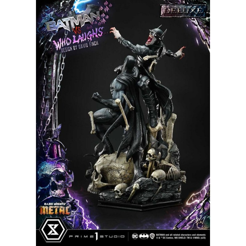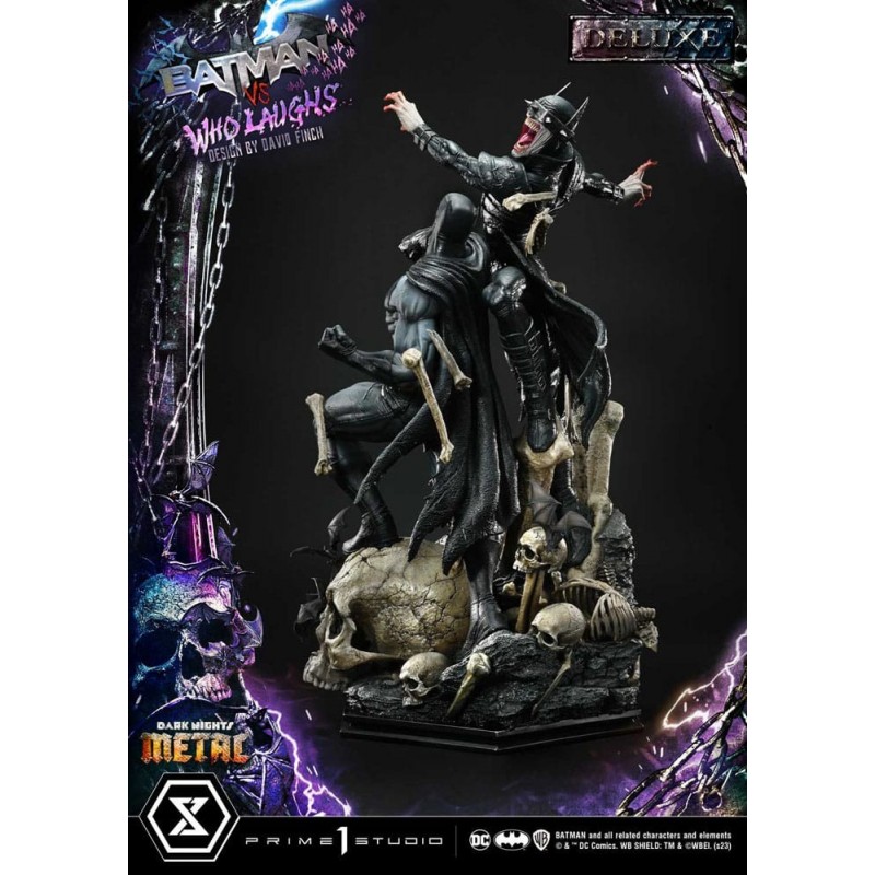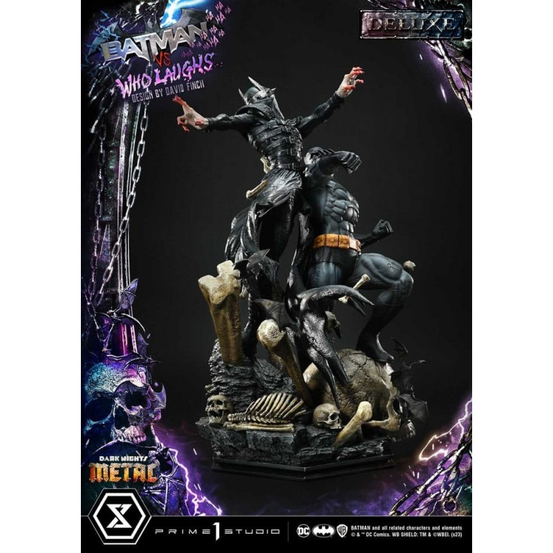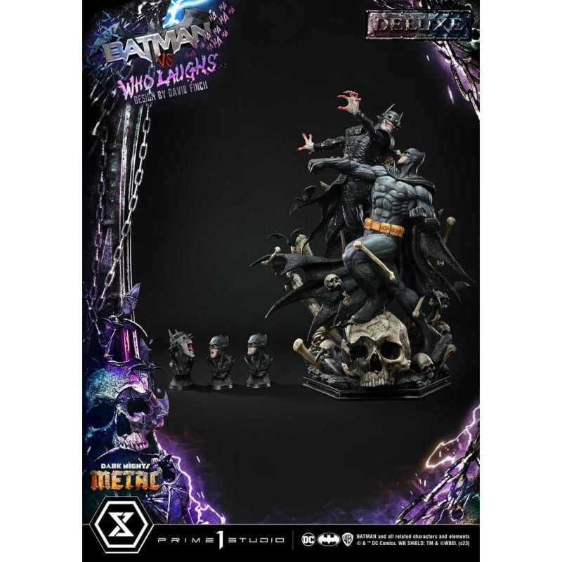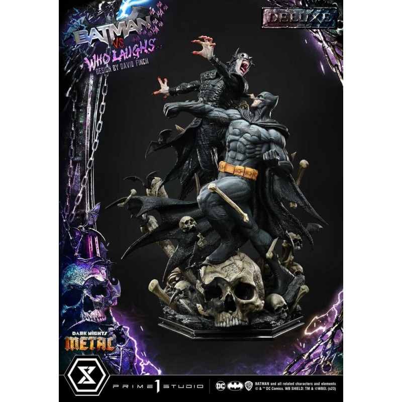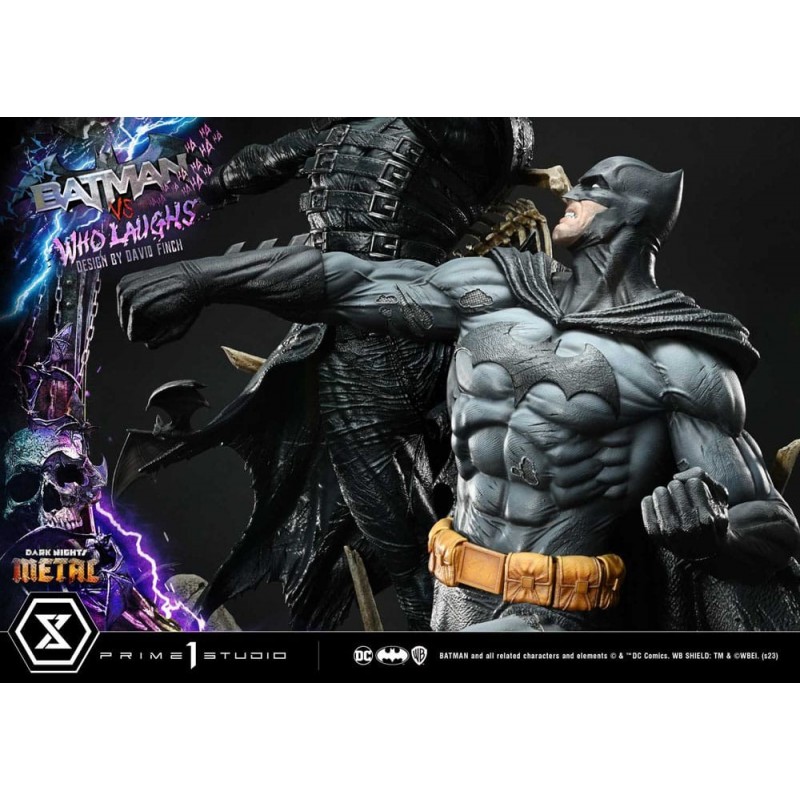Descubre la impactante Estatua Batman VS Batman Who Laughs Deluxe Bonus Version, un verdadero tesoro para los aficionados de Batman. Con dimensiones de 67 x 50 x 39 cm, esta obra maestra de Prime 1 Studio captura la épica batalla entre el Caballero Oscuro y su siniestra contraparte. Fabricada en poliresina de alta calidad, cada detalle ha sido cuidadosamente finalizado y pintado a mano, asegurando una representación fiel y detallada.