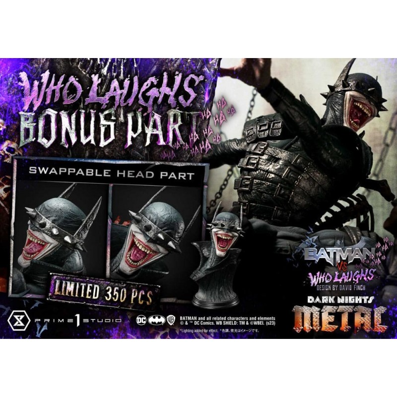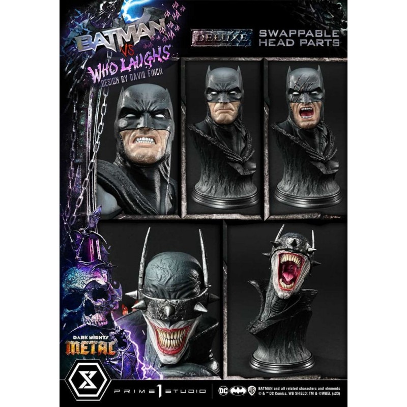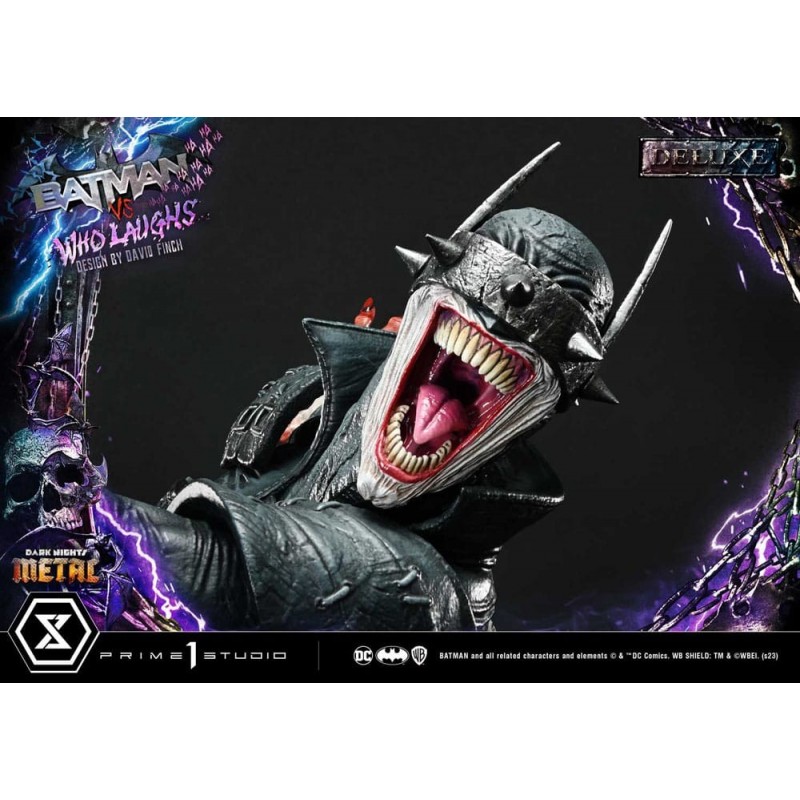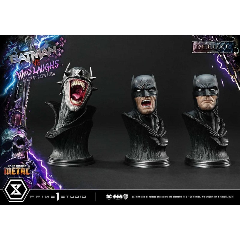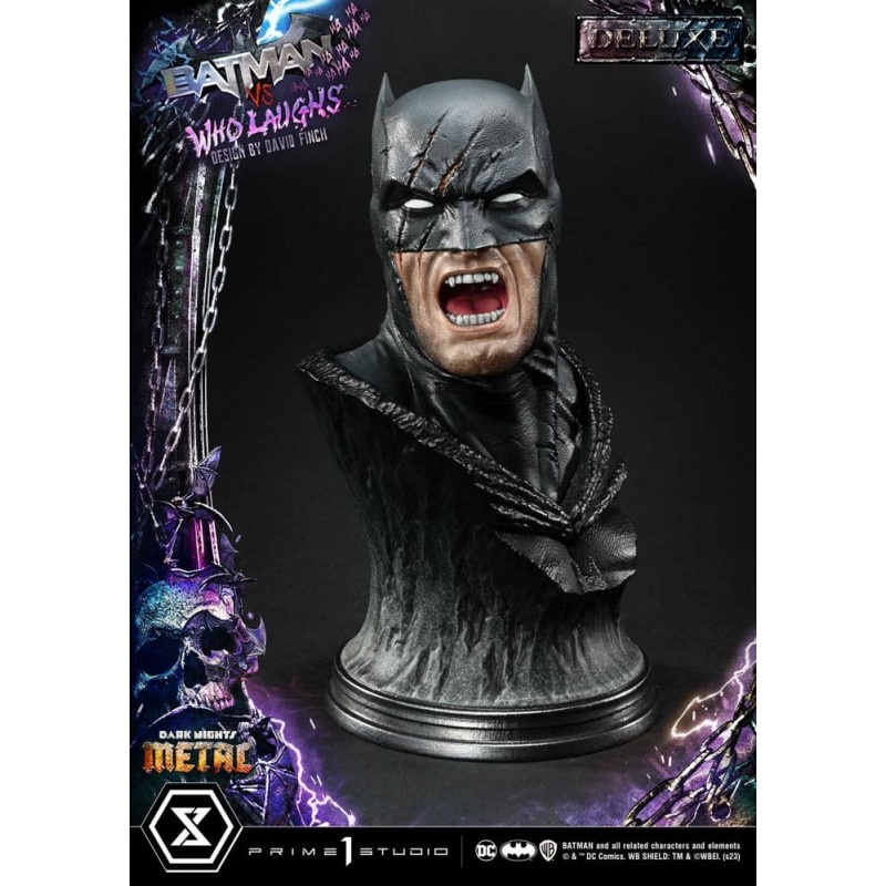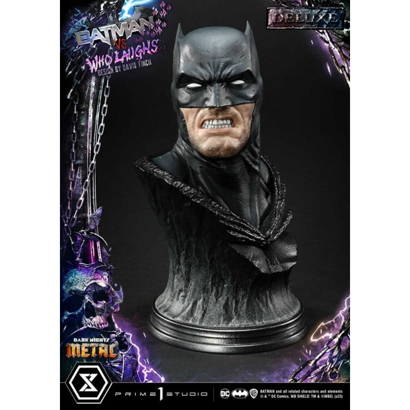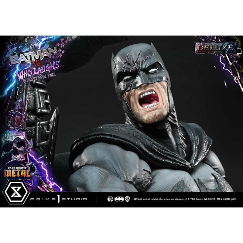 Descubre la impactante Estatua Batman VS Batman Who Laughs Deluxe Bonus Version, un verdadero tesoro para los aficionados de Batman. Con dimensiones de 67 x 50 x 39 cm, esta obra maestra de Prime 1 Studio captura la épica batalla entre el Caballero Oscuro y su siniestra contraparte. Fabricada en poliresina de alta calidad, cada detalle ha sido cuidadosamente finalizado y pintado a mano, asegurando una representación fiel y detallada.