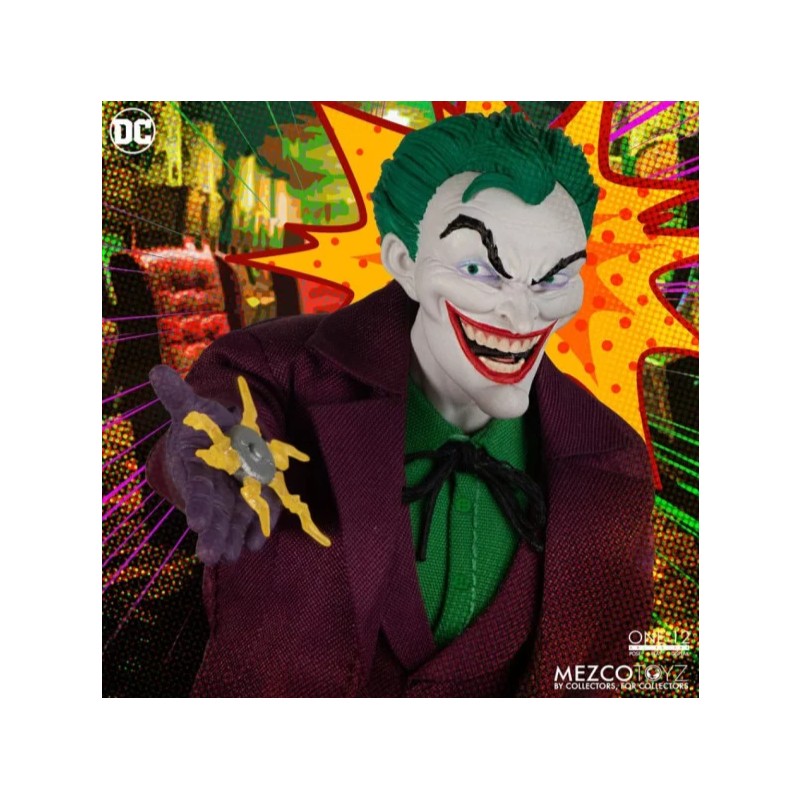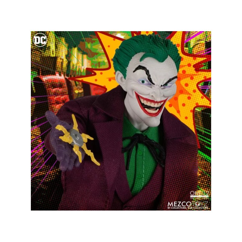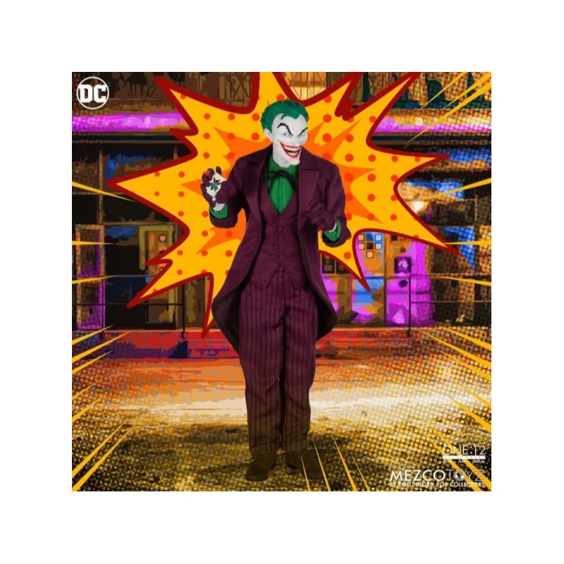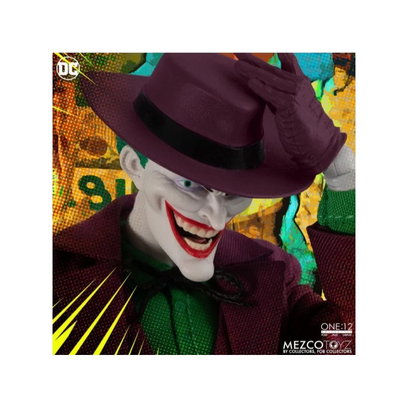 La figura de acción de The Joker Golden Age Edition de Mezco Toyz captura a la perfección el icónico estilo de este villano de DC Comics. Vestido con su característico traje morado, camisa de vestir, corbata de lazo y sombrero de ala ancha removible, cada elemento de la figura ha sido meticulosamente diseñado para reflejar la Edad de Oro del personaje.