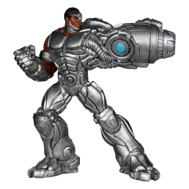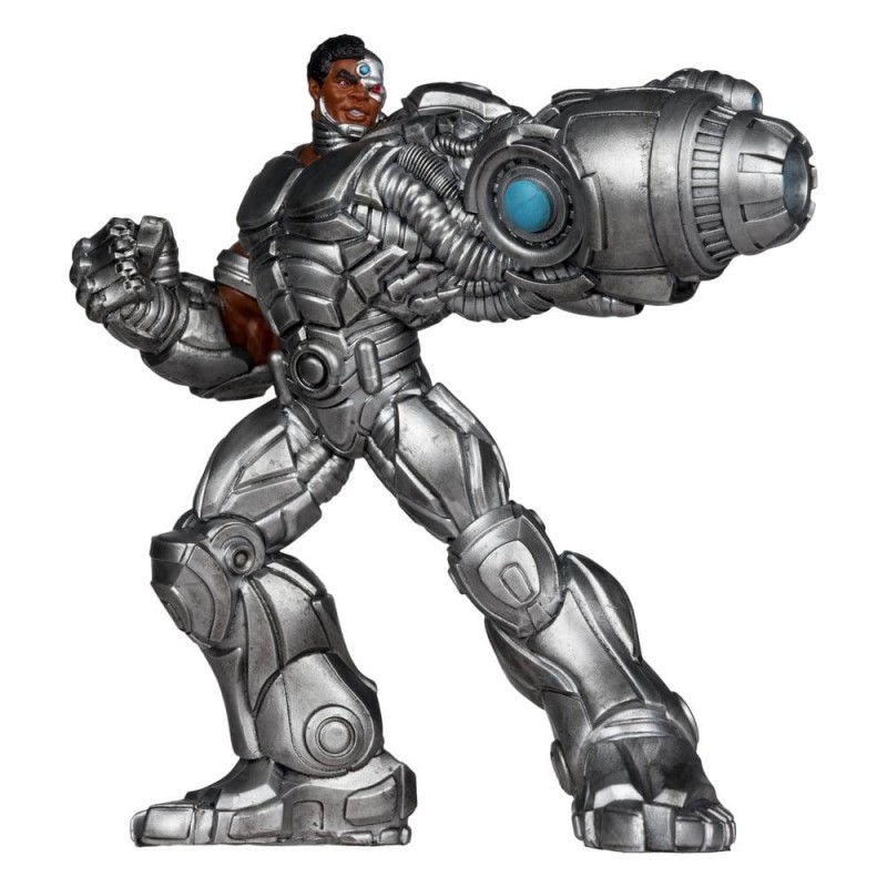 Esta impresionante estatua de vinilo de Cyborg pertenece al universo DC y tiene un tamaño aproximado de 12,3 cm. Diseñada meticulosamente por McFarlane Toys, destaca el nivel de detalle en su armadura metálica, resaltada con tonos plateados y acentos azules en su cañón. La figura captura a la perfección la esencia futurista del personaje, con su imponente postura de combate.