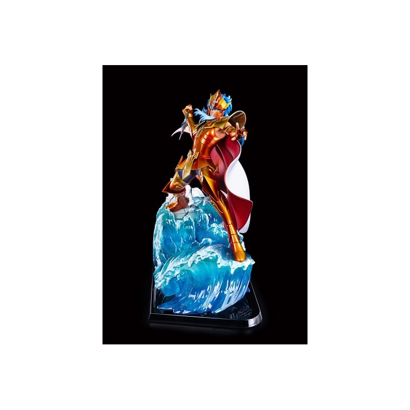 Esta magnífica figura de Poseidon de Tsume Arts, parte de la colección IKIGAI, captura con gran detalle un momento icónico del anime Saint Seiya. Julin Solo, reencarnado en Poseidon, está representado con su armadura dorada resplandeciente y una capa roja ondeando hacia atrás, simbolizando el poder de los océanos. Hecha en resina y PVC, la figura mide 18x36x37 cm y se presenta en una escala de 1/6, asegurando una representación fiel y detallada. La escena de batalla está esculpida sobre olas azules dinámicas que enfatizan el poder de Poseidon mientras lanza su ataque mortal a Saori, la reencarnación de Atenea.