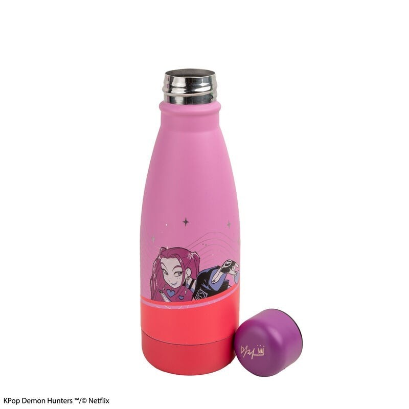 Descubre la Mini Botella de Agua inspirada en Kpop Demon Hunters, un producto con licencia oficial de CINEREPLICAS. Esta botella 500 ml., compacta es ideal para cualquier fan de la serie, con un diseño vibrante en tonos rosas y detalles de personajes icónicos estampados en el exterior. Su tamaño es perfecto para llevar contigo a cualquier lugar, ya sea al trabajo, al gimnasio o en una caminata. Fabricada con materiales de alta calidad que garantizan su durabilidad, es un regalo original y práctico. El tapón es de color morado, complementando el diseño único de la botella. No solo es un artículo útil, sino también un complemento de moda que no puede faltar en tu colección.