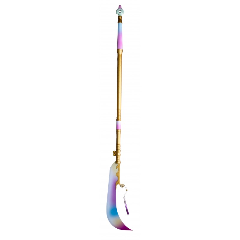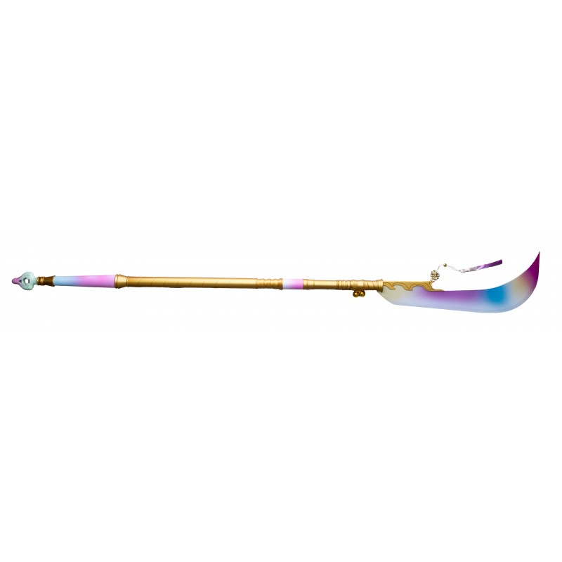 Descubre la Lanza Mira Huntrix, una pieza impresionante de la colección Demon Hunters de Kpop. Esta lanza de 162 cm, fabricada por AMONT, destaca por su vibrante diseño que combina tonos dorados con un degradado en rosa, azul y blanco. El mango muestra una elegante transición de colores pastel, mientras que la hoja curva, adornada en la base con un detalle dorado, añade un toque distintivo y único.