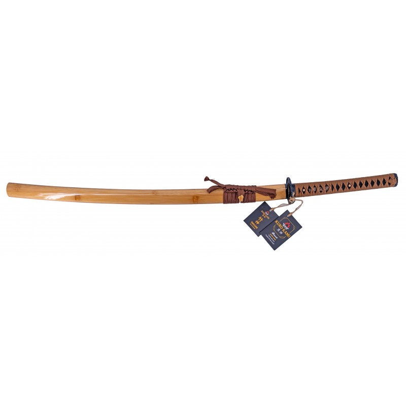 La vaina de bambú complementa perfectamente el diseño, conservando la esencia de la tradición japonesa. Con un peso de 1355 gramos, la katana es fácil de manejar, adecuada tanto para exposición como para práctica.