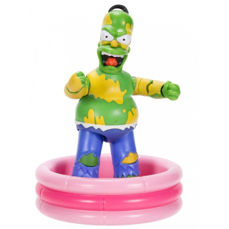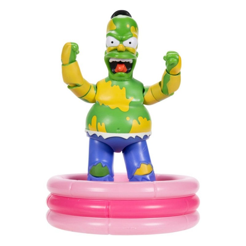 Descubre la Figura Premium Homer Furioso de 13 cm, inspirada en Los Simpson. Esta figura articulada, fabricada por Jakks Pacific, captura a Homer en su versión más cómica y colorida, cubierto de manchas verdes y amarillas, simulando estar pintado. Viene con un anillo inflable rosa y un bote de pintura verde como accesorios. El diseño incluye pantalones azules y una expresión de furia que resalta su personalidad única.