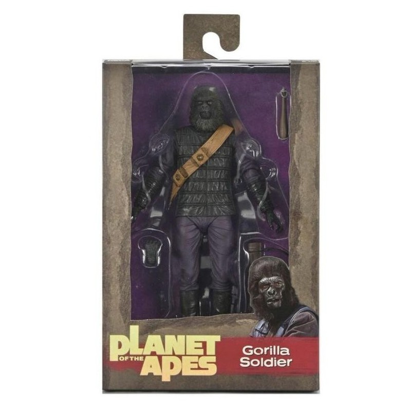 Presentamos la figura de colección Soldado Gorila, una pieza imprescindible para los fans de la película clásica de 1968, El planeta de los simios. Esta detallada figura de 18 cm captura la esencia del icónico personaje, fabricada por Neca, un referente en figuras de acción. La figura viene embalada en una caja con ventana, ideal para exhibir.