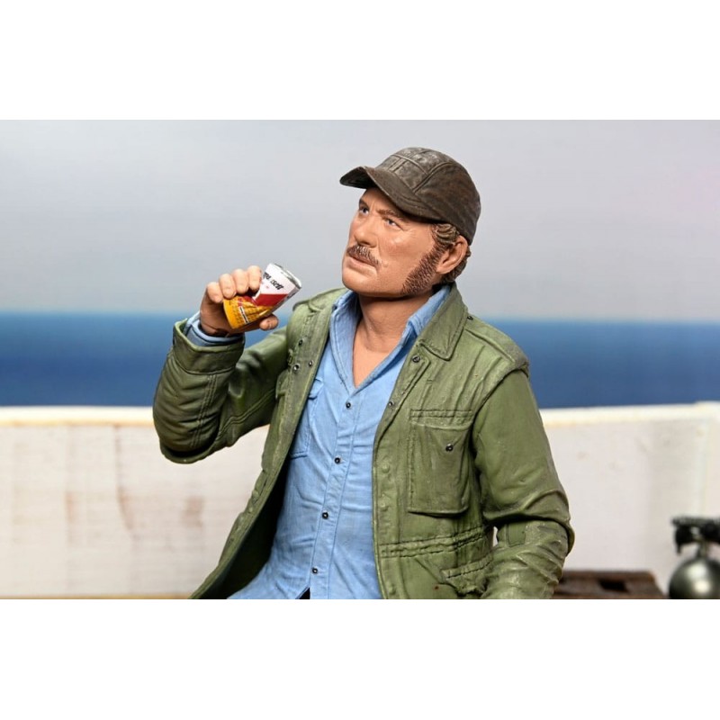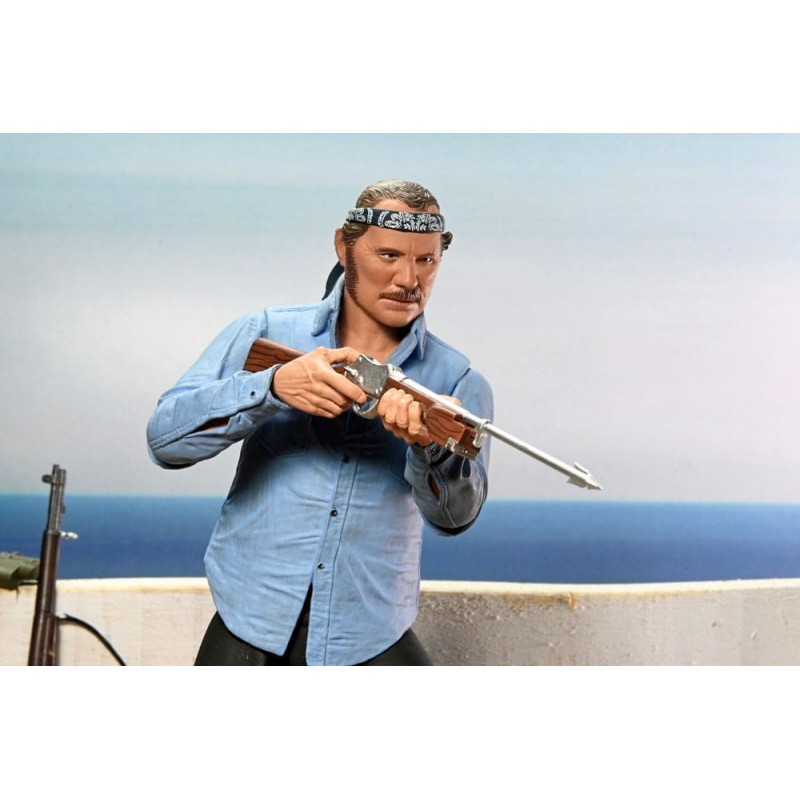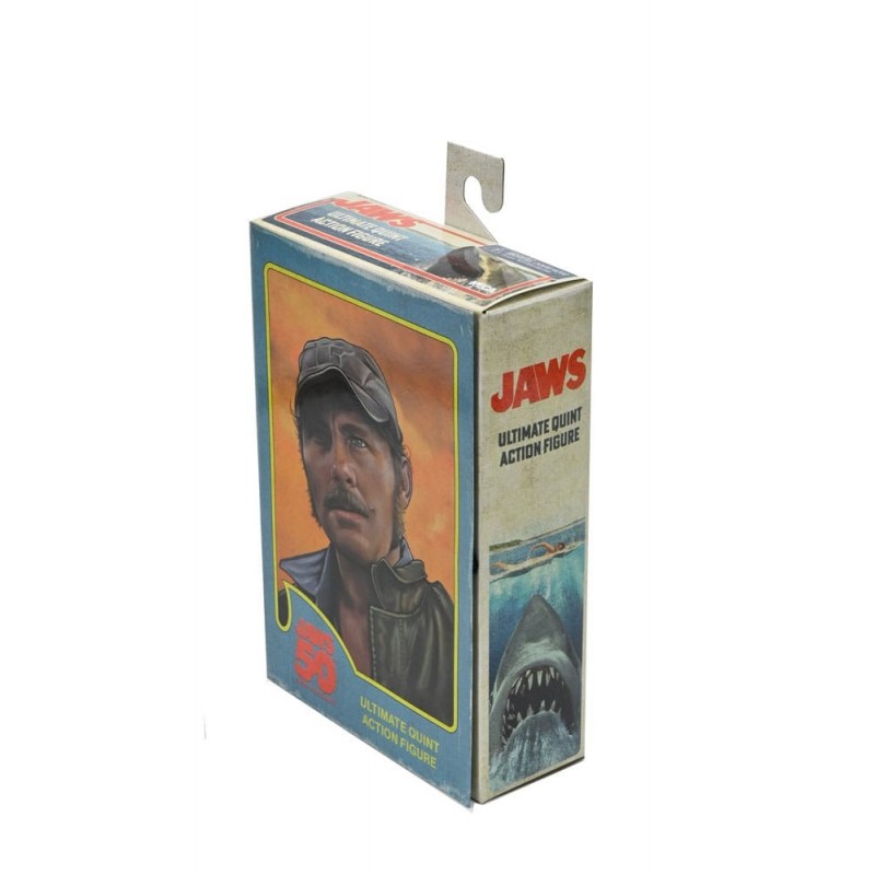 Celebrando el 50 aniversario de la icónica película "Tiburón", esta figura articulada de Sam Quint es un imprescindible para los coleccionistas y fanáticos del cine. Fabricada por NECA, la figura tiene un tamaño aproximado de 18 cm y viene presentada en un elegante blister. Cada detalle de la figura está cuidadosamente diseñado, desde su chaqueta verde con múltiples bolsillos hasta su camisa azul y gorra, capturando la esencia del personaje con precisión.