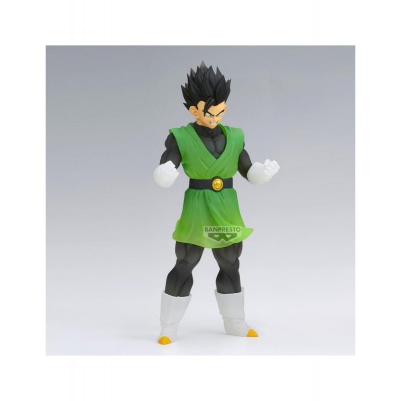 Esta figura de Gohan, parte de la colección Clearise de Banpresto, captura al personaje en una postura dinámica y poderosa representando su evolución durante el arco de Majin Buu. Inspirada en su papel como guerrero maduro, la figura destaca por sus detalles meticulosamente esculpidos en la expresión facial y vestimenta.