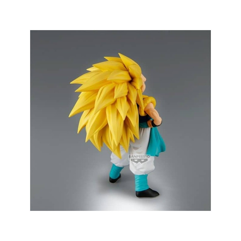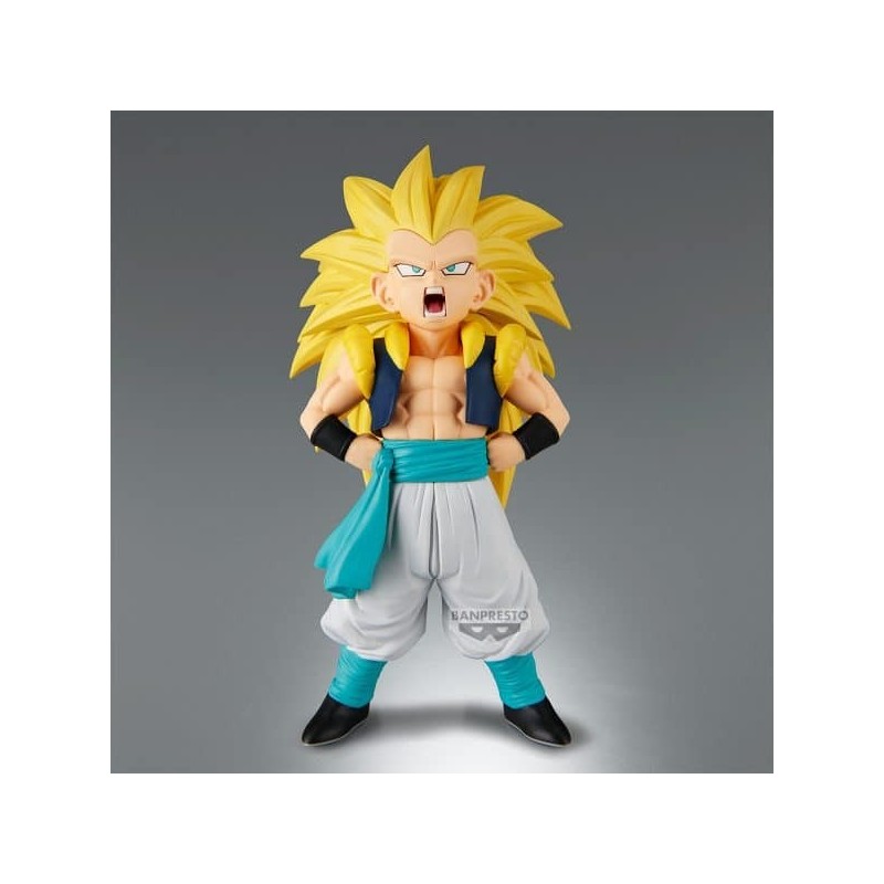 La figura de Gotenks en su transformación Super Saiyan 3 es una obra maestra para cualquier fan de Dragon Ball Z. Perteneciente a la línea Solid Edge Works de Banpresto, destaca por su impresionante diseño y atención al detalle. La figura mide 16 cm de altura y está fabricada en PVC y ABS de alta calidad, asegurando un acabado perfecto y una durabilidad excepcional.