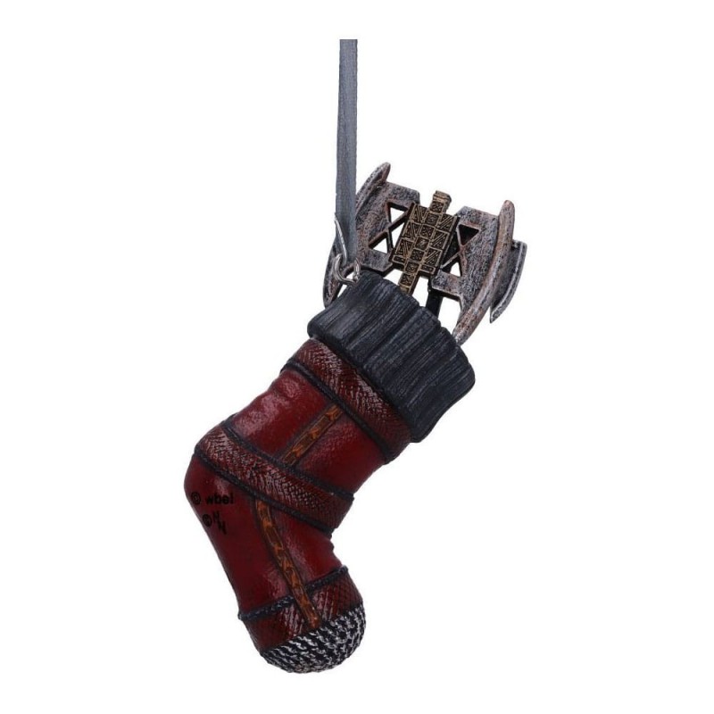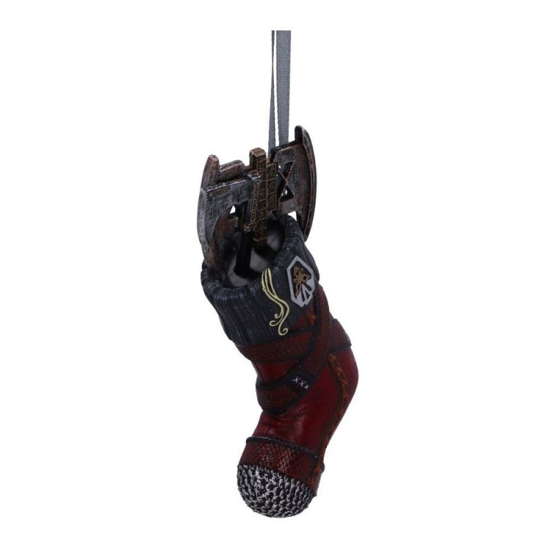 Convierte tu árbol de Navidad en un homenaje al mundo de El Señor de los Anillos con esta detallada decoración de Gimli. Este adorno, fabricado por Nemesis, representa un diseño único con un hacha y un guante de estilo medieval rico en detalles.