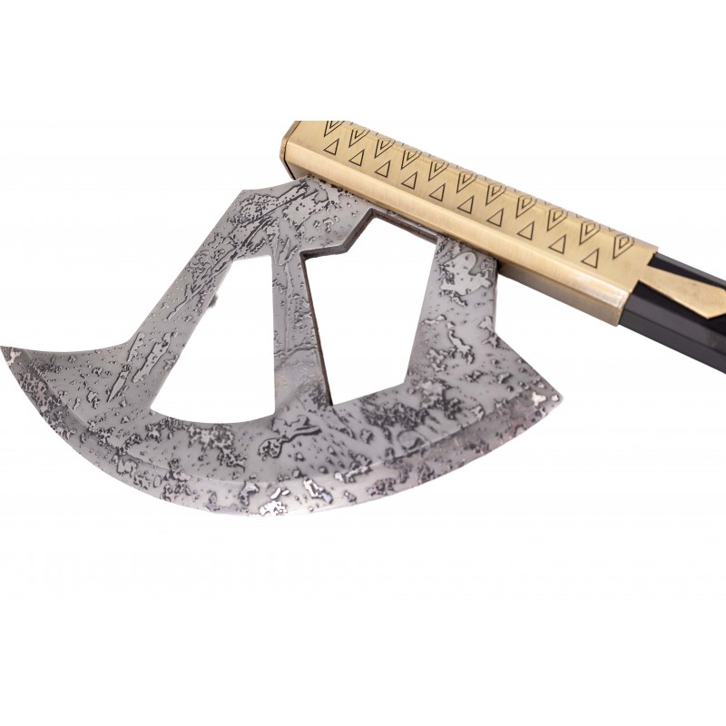 Descubre esta impresionante réplica del Hacha de paseo de Gimli del icónico universo de El Señor de los Anillos. Con un tamaño total de 118 cm, esta pieza es un verdadero homenaje a la famosa arma del valiente enano. La hoja de acero presenta un acabado martillado que emula un estilo rústico y auténtico, midiendo 17 x 25 cm con un grosor de 10 mm.