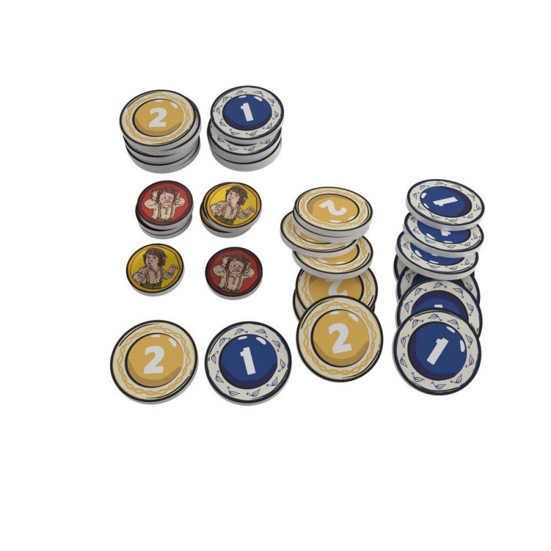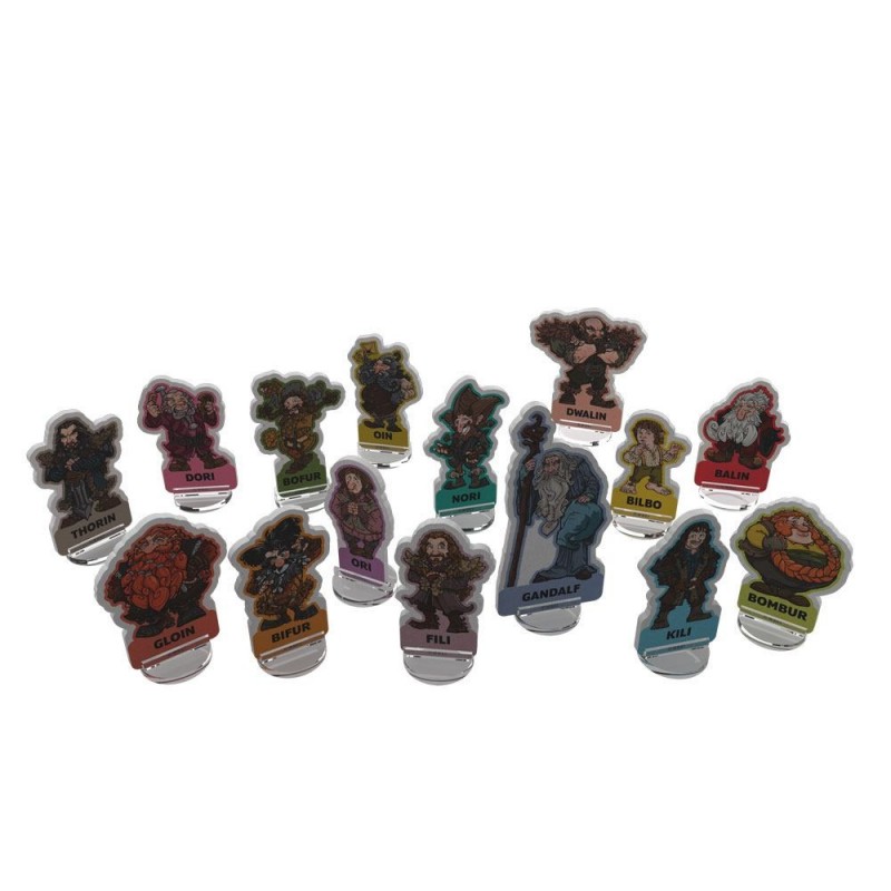 Incluye figuras de los personajes, como Thorin, Gandalf y Bilbo, permitiendo a los jugadores asumir su papel y vivir una experiencia inmersiva. Las fichas y componentes adicionales, ilustrados con motivos de la saga, ofrecen una jugabilidad dinámica y entretenida.
