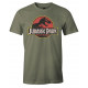 Aunque lo mejor es su diseño, inspirado en la película original de Parque Jurásico y Steven Spielberg, con el logo clásico de este parque temático en el que el peligro acecha en cada rincón, Jurassic Park y la silueta de ese mítico T-Rex que destacan perfectamente sobre el color caqui de la camiseta.