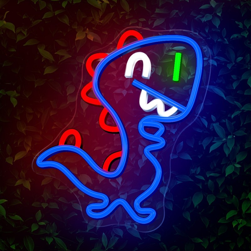 La lámpara Neon LED Jurassic Baby Dino de Forever Light es una pieza única de decoración que combina diseño moderno y tecnología eficiente. Con su forma de pequeño dinosaurio, esta luz neon presenta un esquema de colores vibrantes en azul, rojo y verde, perfecto para crear un ambiente original y atractivo.