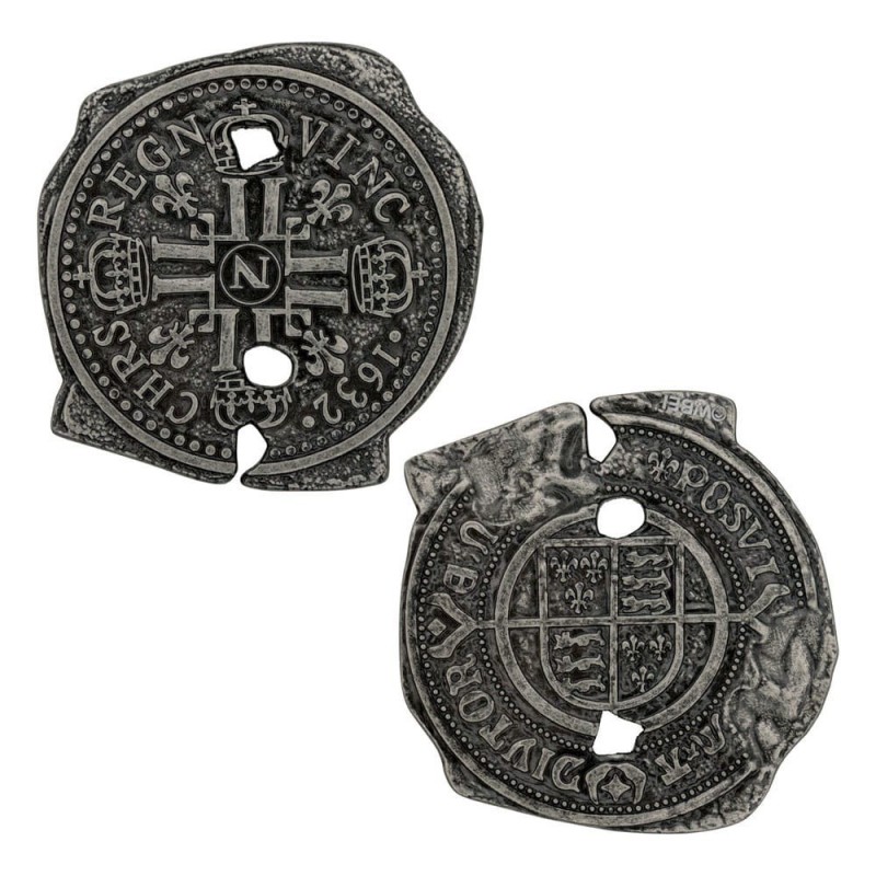 El set incluye una detallada llave de hueso metálico, un doblón de aspecto envejecido, y una selección de joyas del tesoro pirata que evocan el espíritu de los intrépidos buscadores de tesoros. Además, el mapa del tesoro te invita a revivir las emocionantes escenas de la película.