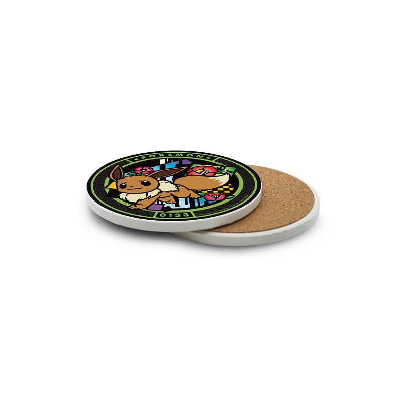 Descubre el encanto de Eevee con este posavasos cerámico de Pokémon. Su diseño vibrante muestra a Eevee con flores y fondos geométricos, todo enmarcado en un círculo negro que resalta sus colores, muy art decó. Hecho de cerámica de alta calidad, asegura la protección de tus superficies contra manchas y calor. Este producto con licencia oficial es el regalo ideal para fans de Pokémon y una pieza decorativa que añadirá un toque distintivo a cualquier hogar.