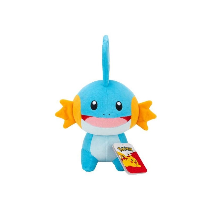 Sumérgete en el mundo de Pokémon con este encantador peluche Mudkip de 20 cm. Diseñado por Jazwares, este peluche lucirá perfecto en manos de fans de todas las edades. Fabricado con materiales suaves y resistentes, su color azul vibrante y las aletas naranjas capturan el espíritu del personaje de manera fiel. Es un producto con licencia oficial, asegurando la máxima calidad y autenticidad en cada detalle. Ideal como regalo o para decorar tu espacio personal, este peluche es una pieza imprescindible para cualquier coleccionista de Pokémon.