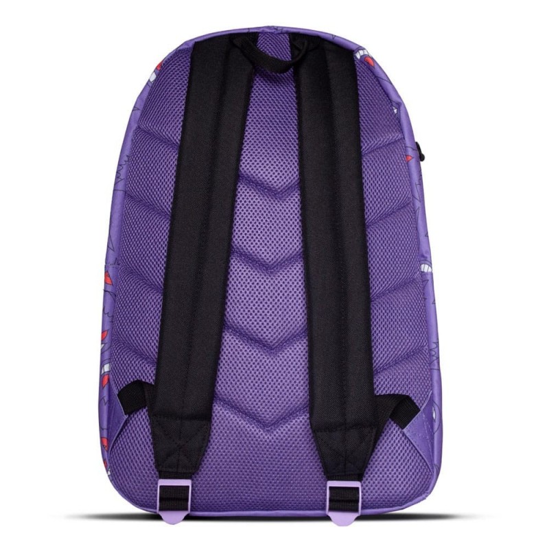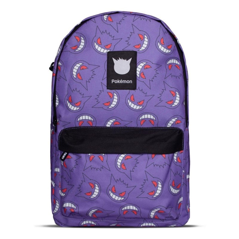 Descubre la mochila Pokémon Gengar All Over Print, un accesorio imprescindible para los amantes de Pokémon. Con un diseño vibrante y audaz, esta mochila muestra un patrón repetido del divertido y misterioso Gengar sobre un fondo morado, capturando la esencia del personaje con sus características caras sonrientes y ojos rojos. Fabricada en 100% poliéster, garantiza durabilidad y resistencia, ideal para el uso diario.