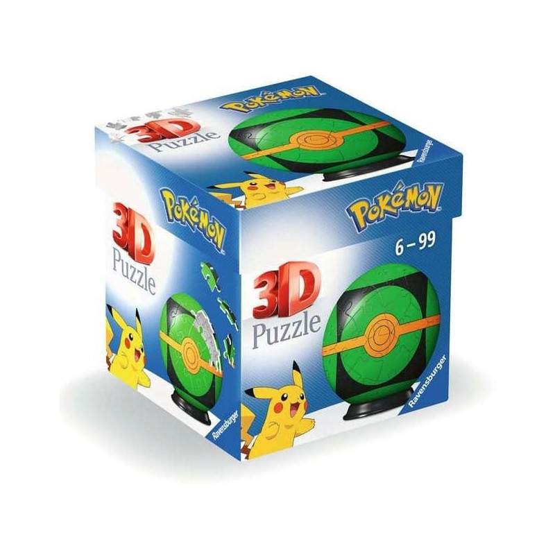 Sumérgete en el mundo Pokémon con este Puzzle 3D Ocaso Ball, compuesto por 55 piezas que se ensamblan para formar una esfera de 7 cm de diámetro. Fabricado por Ravensburger, este puzzle es parte de la línea de decoración y regalos, ideal para los fans de la saga. Cada pieza está fabricada con precisión para asegurar que el montaje sea sencillo y el resultado final, una fiel representación de la Ocaso Ball, con sus distintivos colores verde, negro y un llamativo anillo central en naranja.