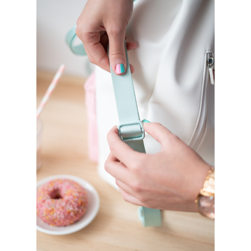 Pero sin duda lo mejor es su precioso diseño, en una combinación tonos pastel irresistible, y con un montón de detallitos en relieve, con Pusheen escondida detrás de un cupcake, mirándolo con deseo. Además, en la superficie de esta mochila, reproducidos en silicona, encontrarás más dulces favoritos de Pusheen, tan bonitos que al verlos pensarás en que ojalá se pudieran comer.