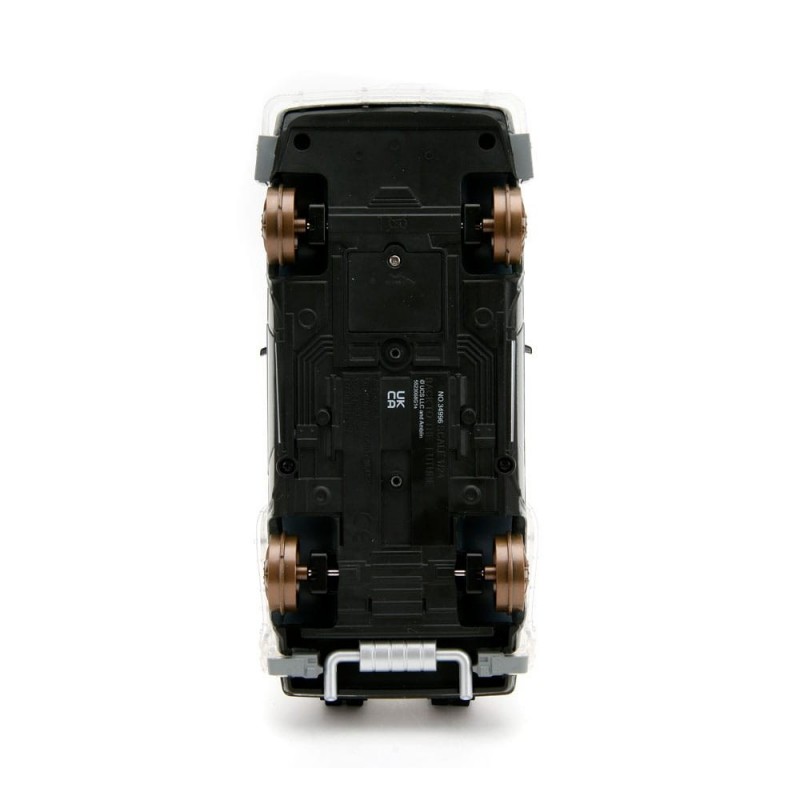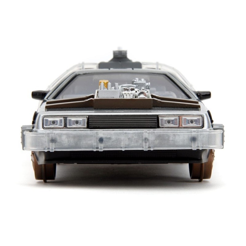 El vehículo cuenta con ruedas de tren, un detalle distintivo que lo diferencia y que rememora ese emocionante viaje en el tiempo. Las puertas de ala de gaviota se abren, permitiendo observar el interior meticulosamente detallado. Este artículo, producido por Jada Toys, viene en una elegante caja con ventana que permite una exhibición perfecta sin necesidad de abrirla.