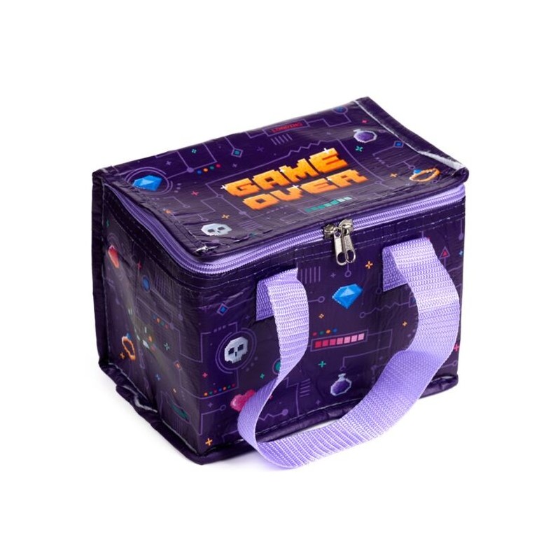 Sumérgete en el mundo del retrogaming con esta encantadora bolsa refrigerante 'Game Over'. Su diseño pixelado evoca la nostalgia de las consolas clásicas, con iconos como el mando de la NES, la Game Boy y las míticas máquinas arcade.
