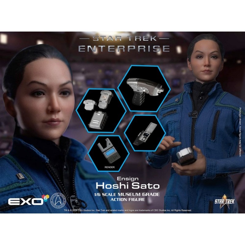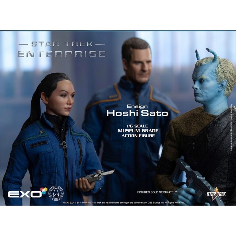 Esta impresionante figura articulada de Ensign Hoshi Sato de la serie "Star Trek: Enterprise" está diseñada a escala 1/6 y tiene una altura de aproximadamente 28 cm. Creada por EXO-6, esta pieza de colección oficial captura cada detalle del personaje con una gran fidelidad.