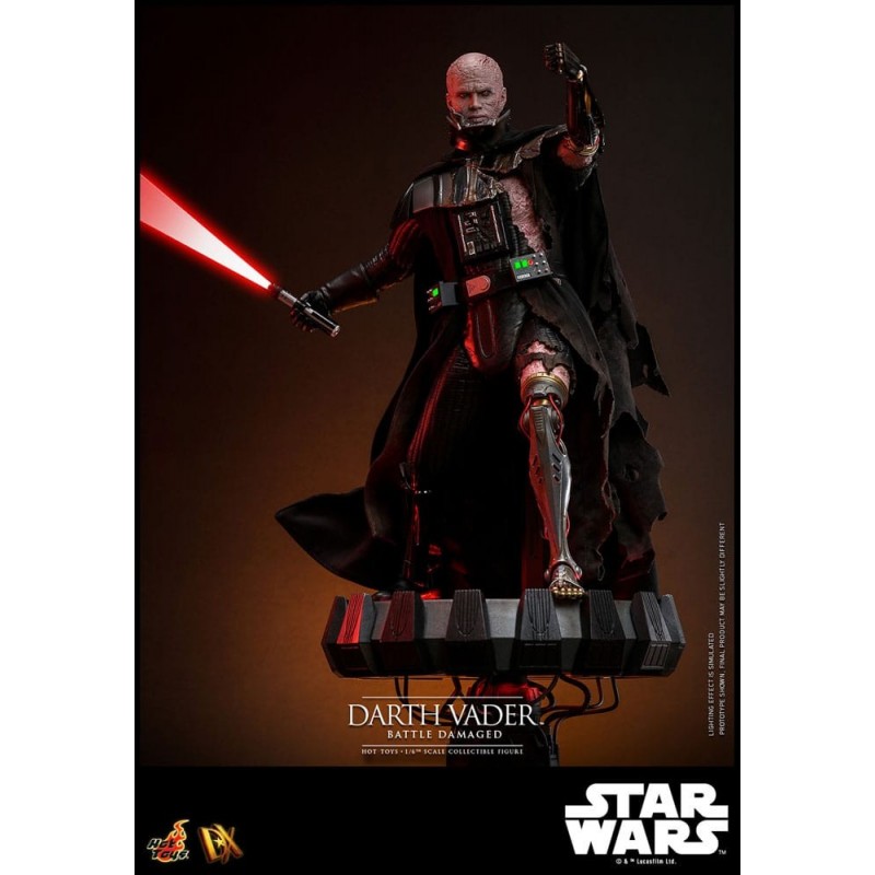 Esta edición Battle Damaged presenta efectos realistas de daños de batalla, recreando meticulosamente el devastador estado del traje de Vader tras intensas batallas. Su base temática ajustable, con función de iluminación LED, añade un toque dinámico, resaltando la presencia majestuosa del personaje.