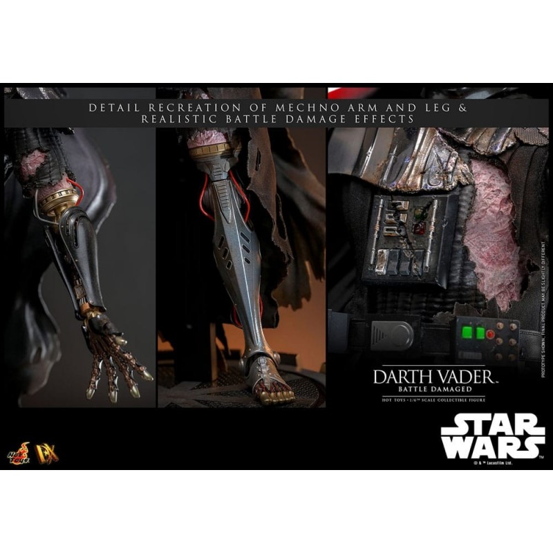 Revive la intensidad de la saga galáctica con la espectacular figura articulada de Darth Vader Battle Damaged de Hot Toys. Esta figura de escala 1/6, con un impresionante tamaño de 35 cm, captura cada detalle del lado oscuro del legendario villano de Star Wars.