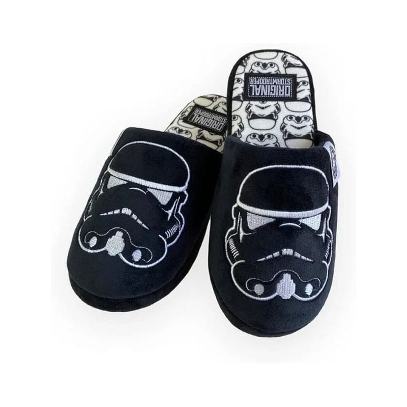 Sumérgete en el universo Star Wars desde la comodidad de tu hogar con estas elegantes pantuflas del Stormtrooper Original. Confeccionadas en un suave color negro, destacan por su diseño bordado del icónico casco de los stormtroopers en la parte superior. Fabricadas por AAA Merchandise, estas pantuflas combinan comodidad y estilo, perfectas para cualquier fan de la saga.