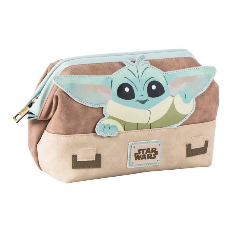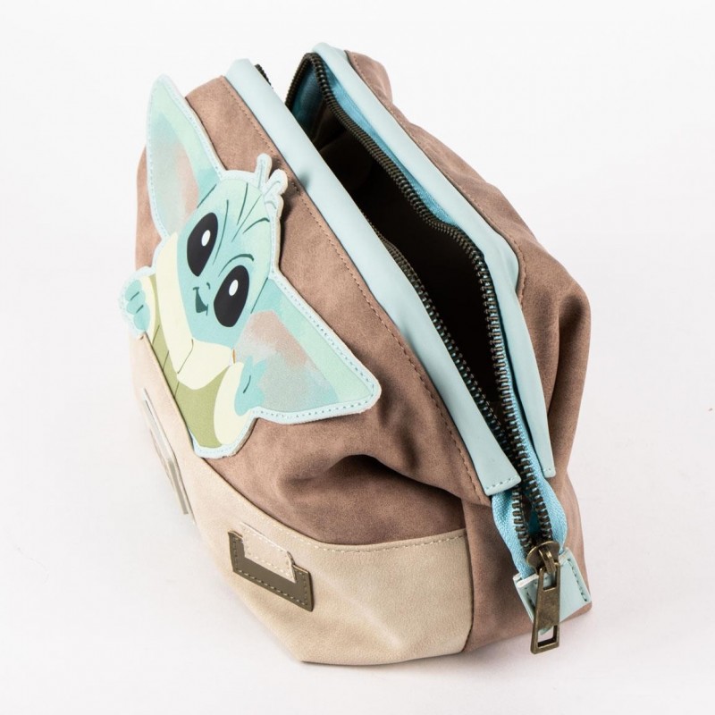 Este encantador neceser de aseo de viaje está diseñado para todos los fans de The Mandalorian y su adorable personaje Grogu. Fabricado en polipiel de alta calidad, presenta un tono beige suave y acogedor que combina perfectamente con la impresión detallada de Grogu en la parte frontal, capturando su característica sonrisa y orejas sobresalientes.