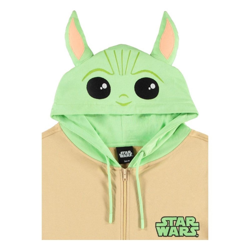 Descubre la sudadera con capucha de Grogu inspirada en Star Wars: The Mandalorian. Esta prenda, fabricada por Difuzed, ofrece un diseño beige con detalles verdes que capturan la esencia del entrañable personaje Grogu. En la parte frontal, lleva un logotipo bordado de Star Wars, mientras que la capucha presenta un adorable diseño de Grogu con orejas en relieve, ideal para los auténticos fans de la saga.